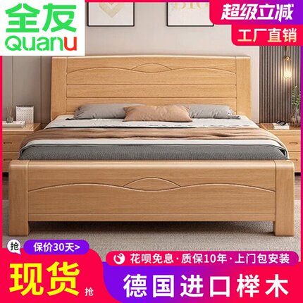 全友家居官网北欧全实木床榉木床主卧简约1.8米双人床1.2米小户型
