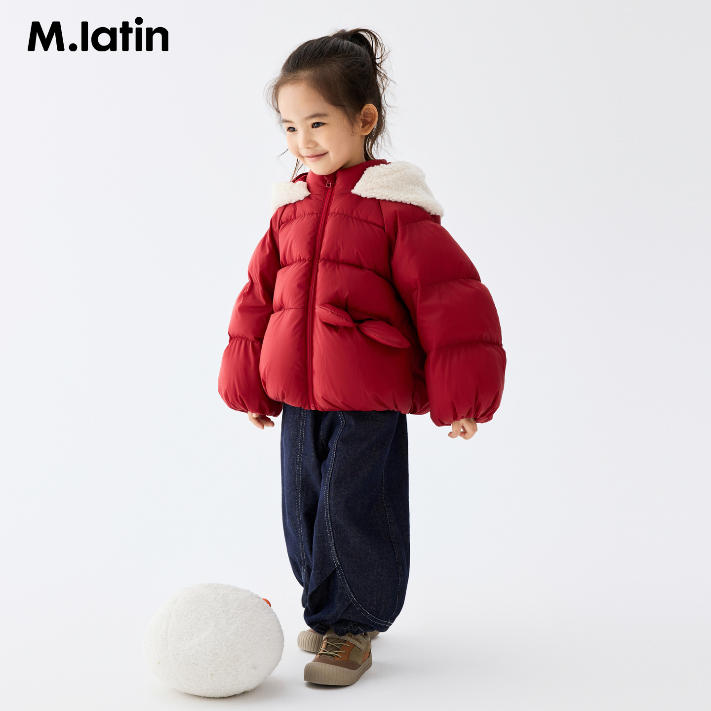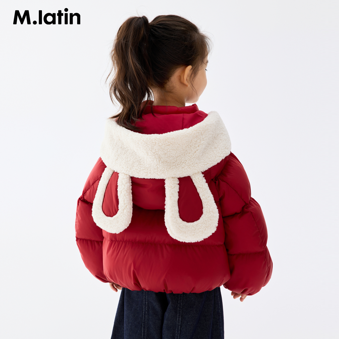 马拉丁儿童羽绒服25冬装新款女小童兔子耳朵连帽短款羽绒服