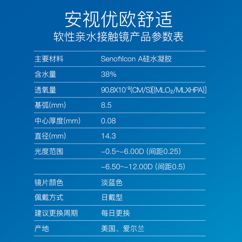 强生安视优Acuvue Oasys欧舒适隐形眼镜日抛近视非月抛透明30片装