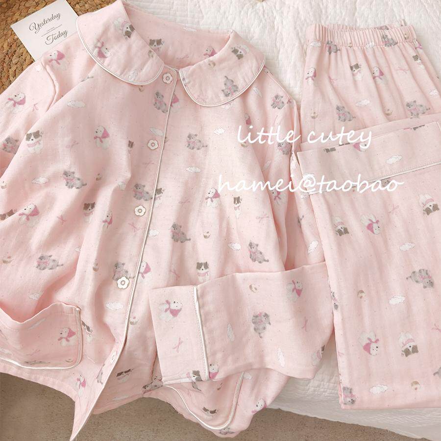 【奶萌小狗】甜美可爱 A类纯棉三层纱布春夏长袖长裤睡衣家居服女