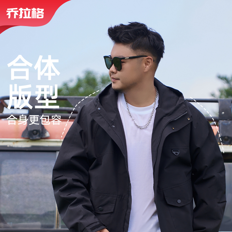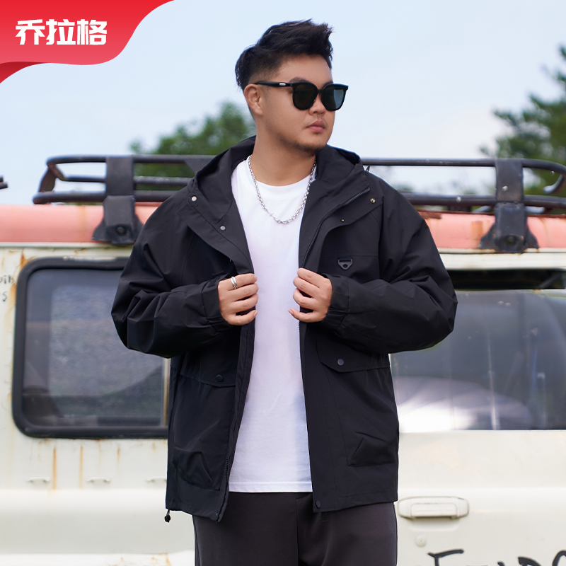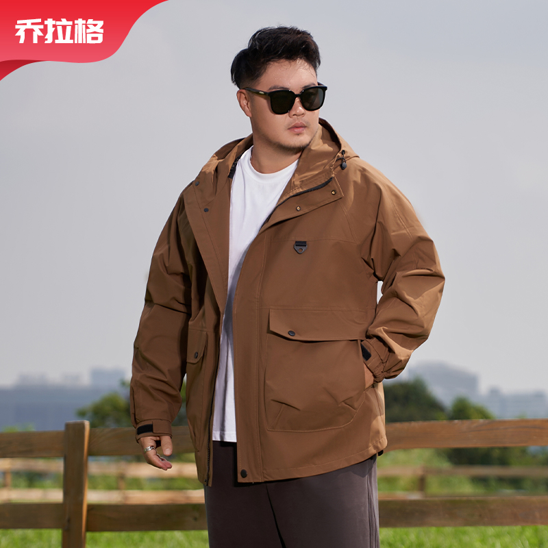 乔拉格大码男士棉服夹克2025秋冬户外工装风连帽外套防风宽松保暖
