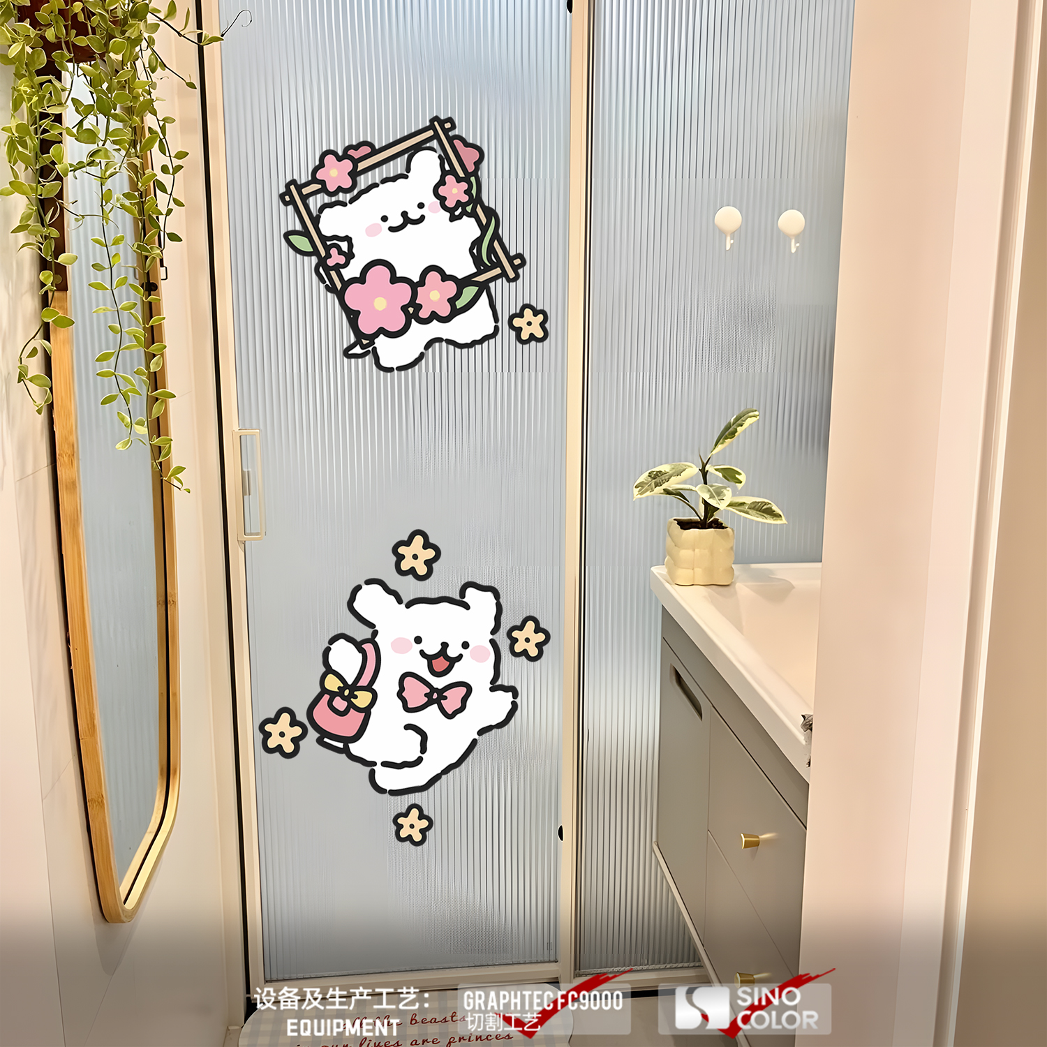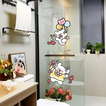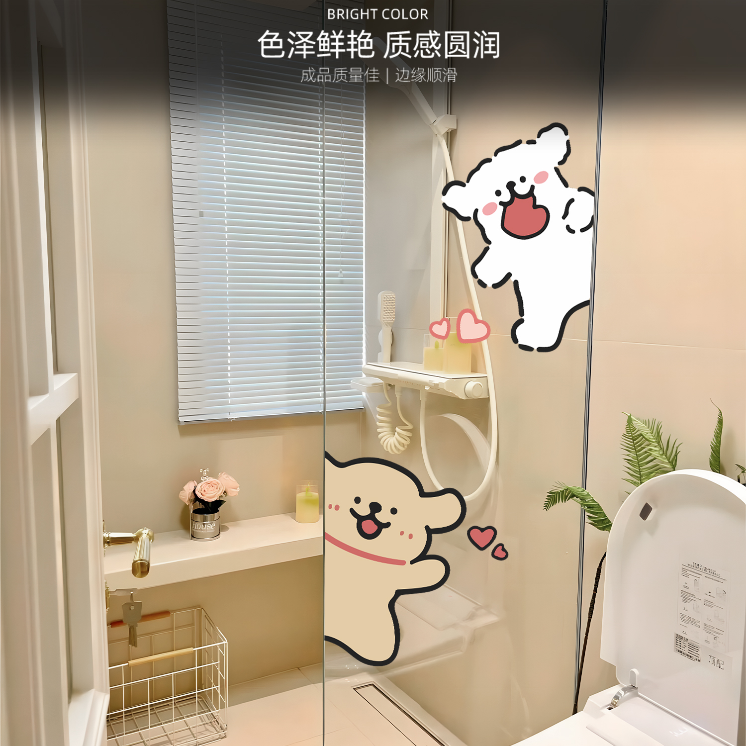 线条小狗浴室玻璃门卡通可爱防水装饰贴纸厨房推拉门电梯门贴纸