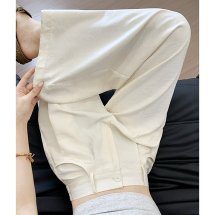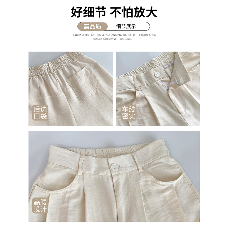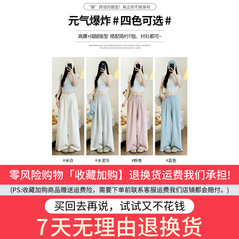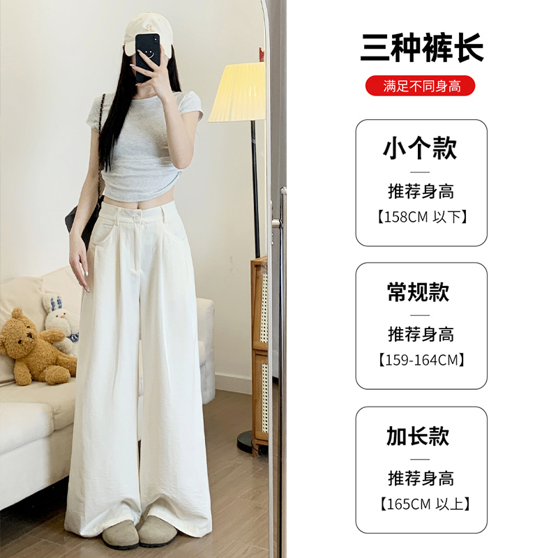 米白色奶芙西装阔腿裤女夏2025新款小个子薄款高腰直筒休闲山本裤