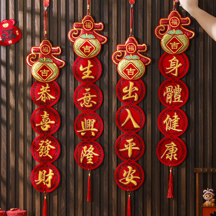 新年挂件2026手工刺绣四字挥春灯笼串春节入户门客厅立体大吉装饰