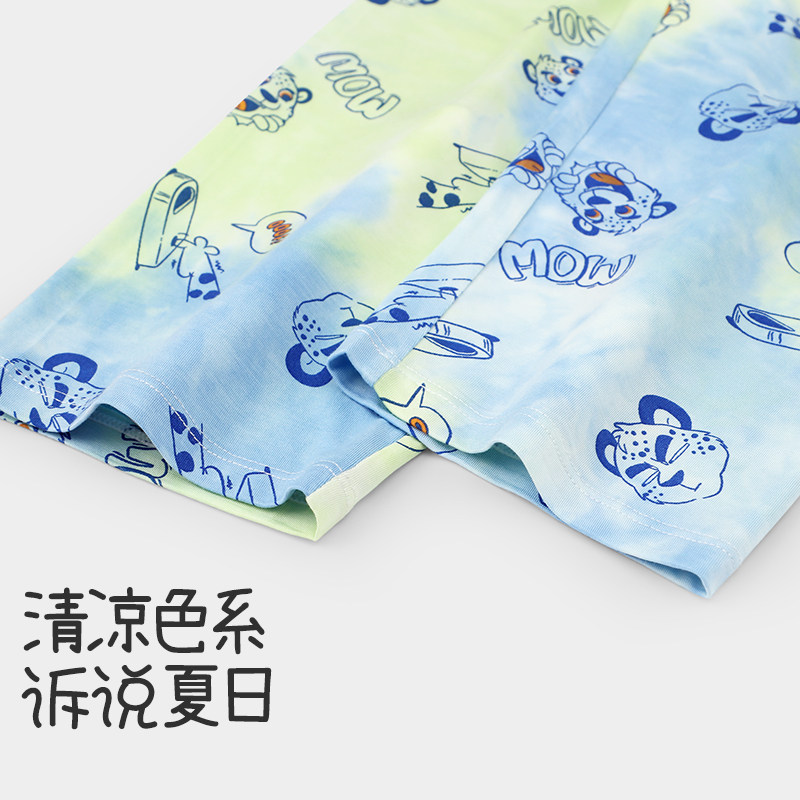 儿童睡衣男童家居服夏季薄款中大童宝宝高弹透气短袖九分裤套装