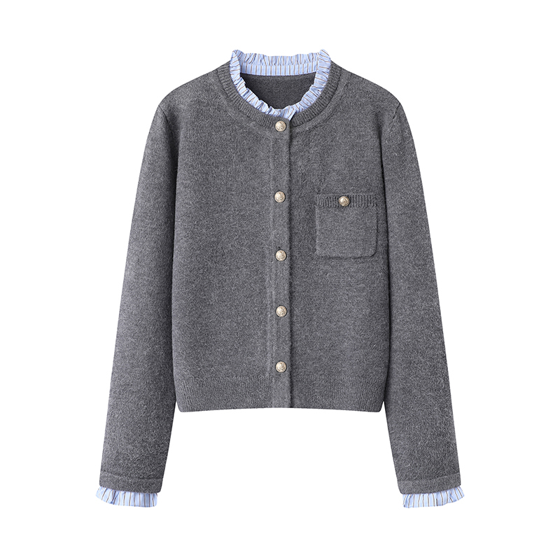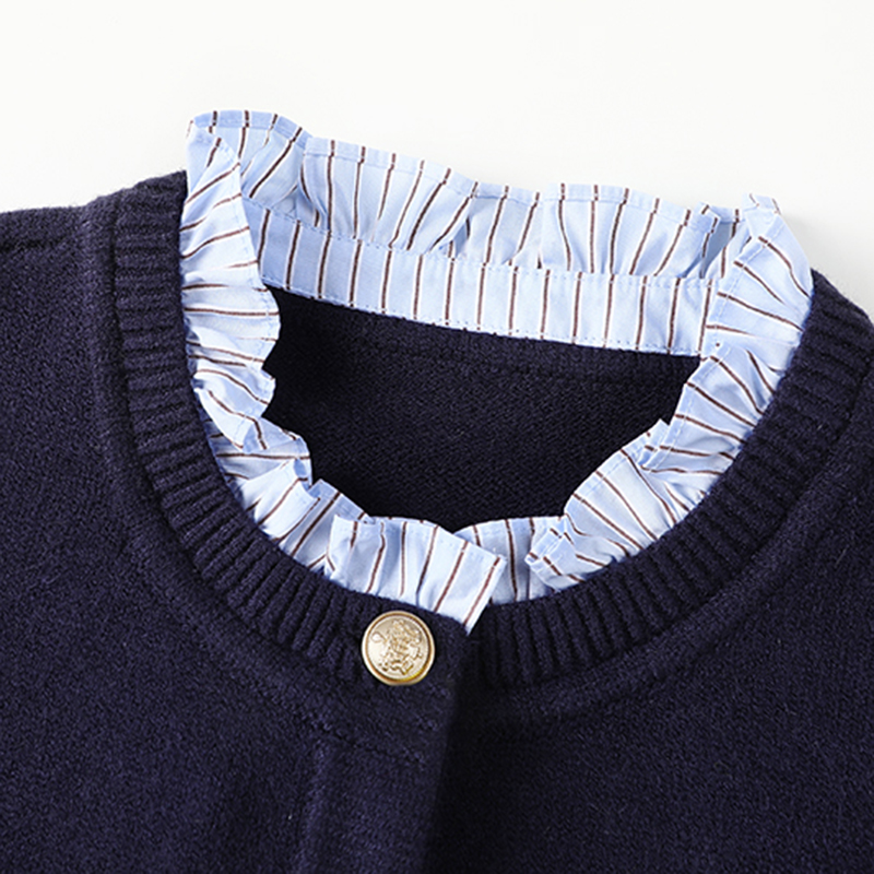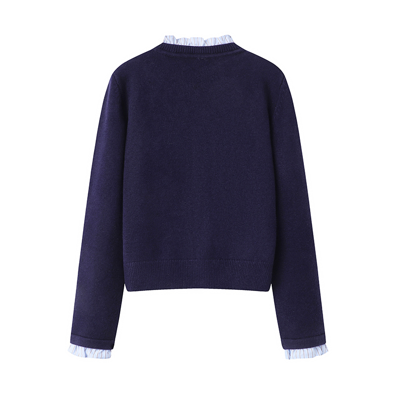 彩系の藏青色假两件木耳领针织衫女2025春学院风减龄开衫毛衣外套