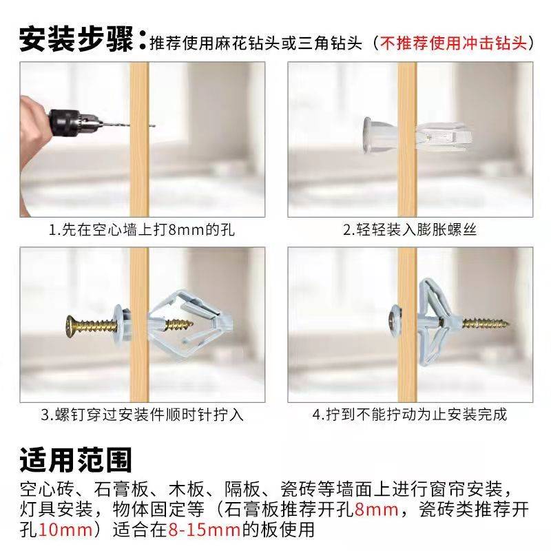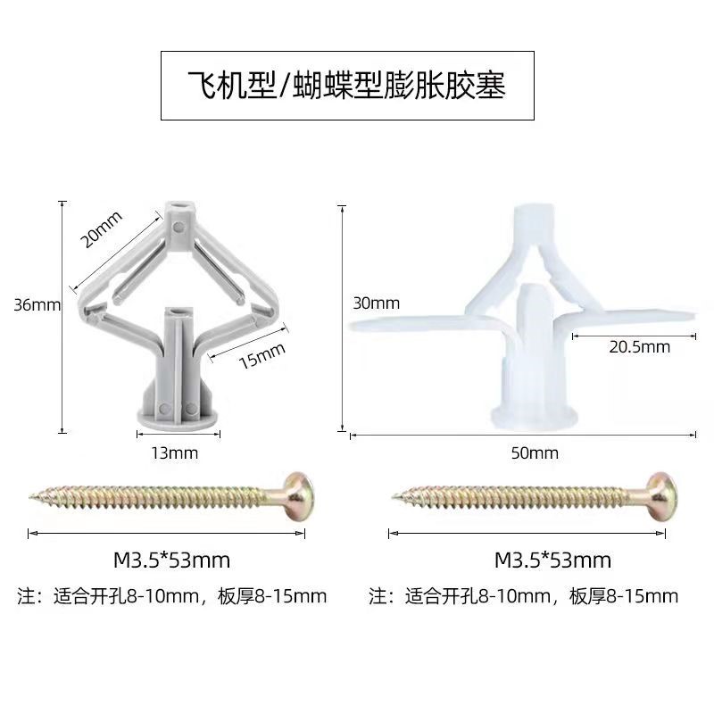 卡扣石膏板飞机膨胀螺丝钉 蝴蝶型空心板固定器镀镍子母套筒空心