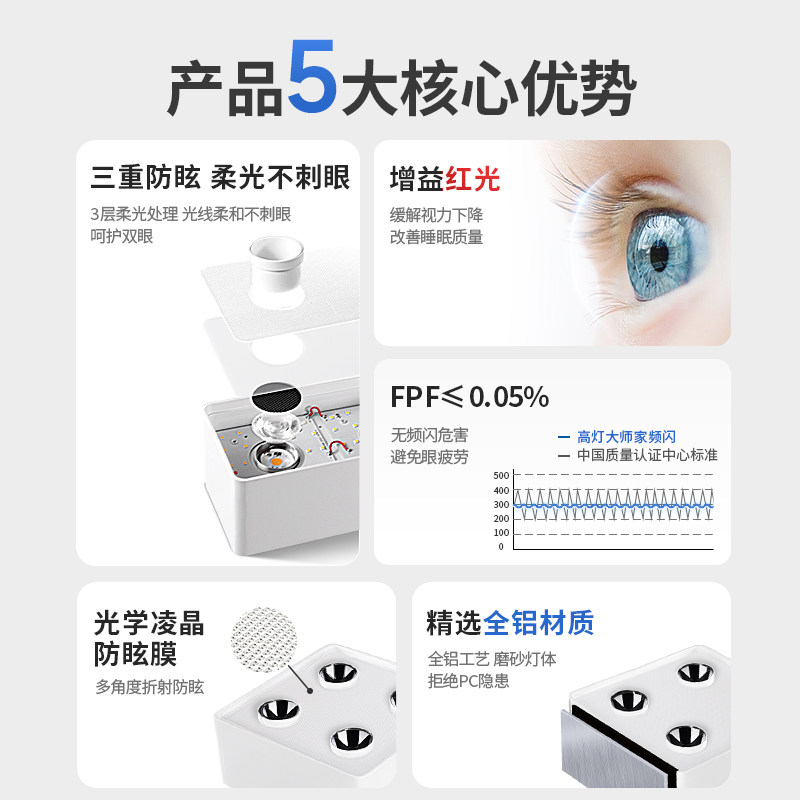 四头明装斗胆灯筒射一体超薄客厅主灯智能高亮防眩卧室吸顶盒子灯