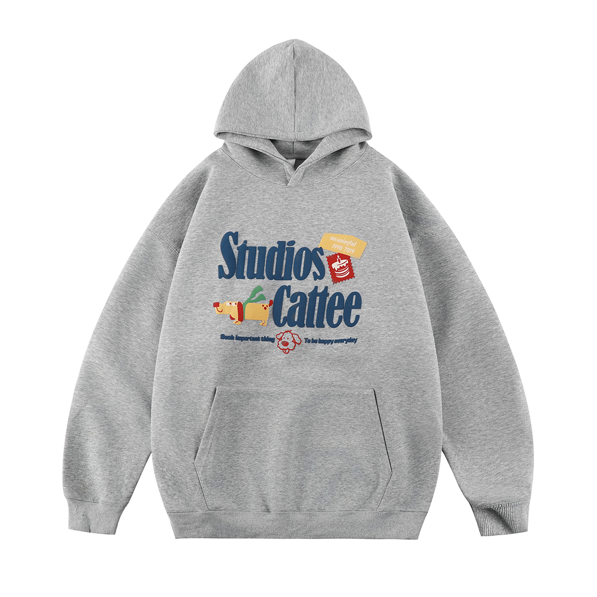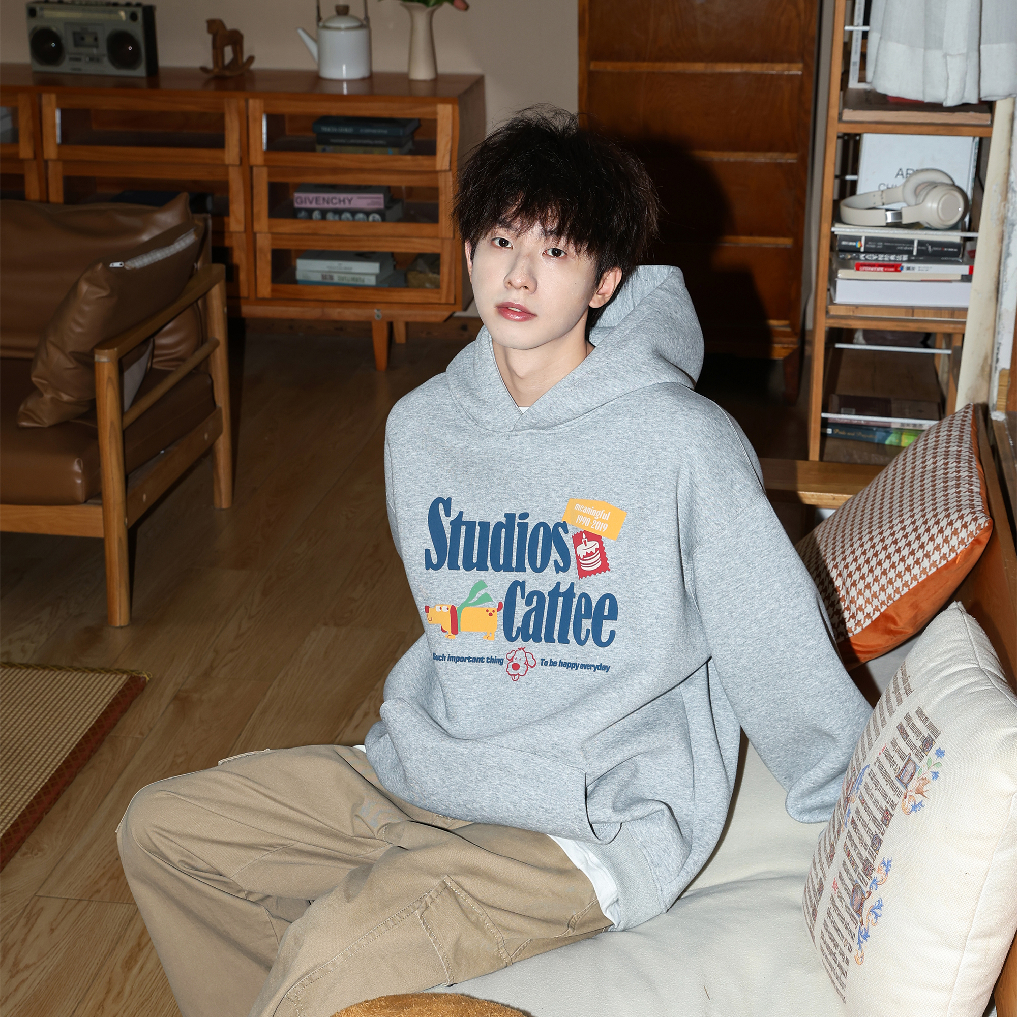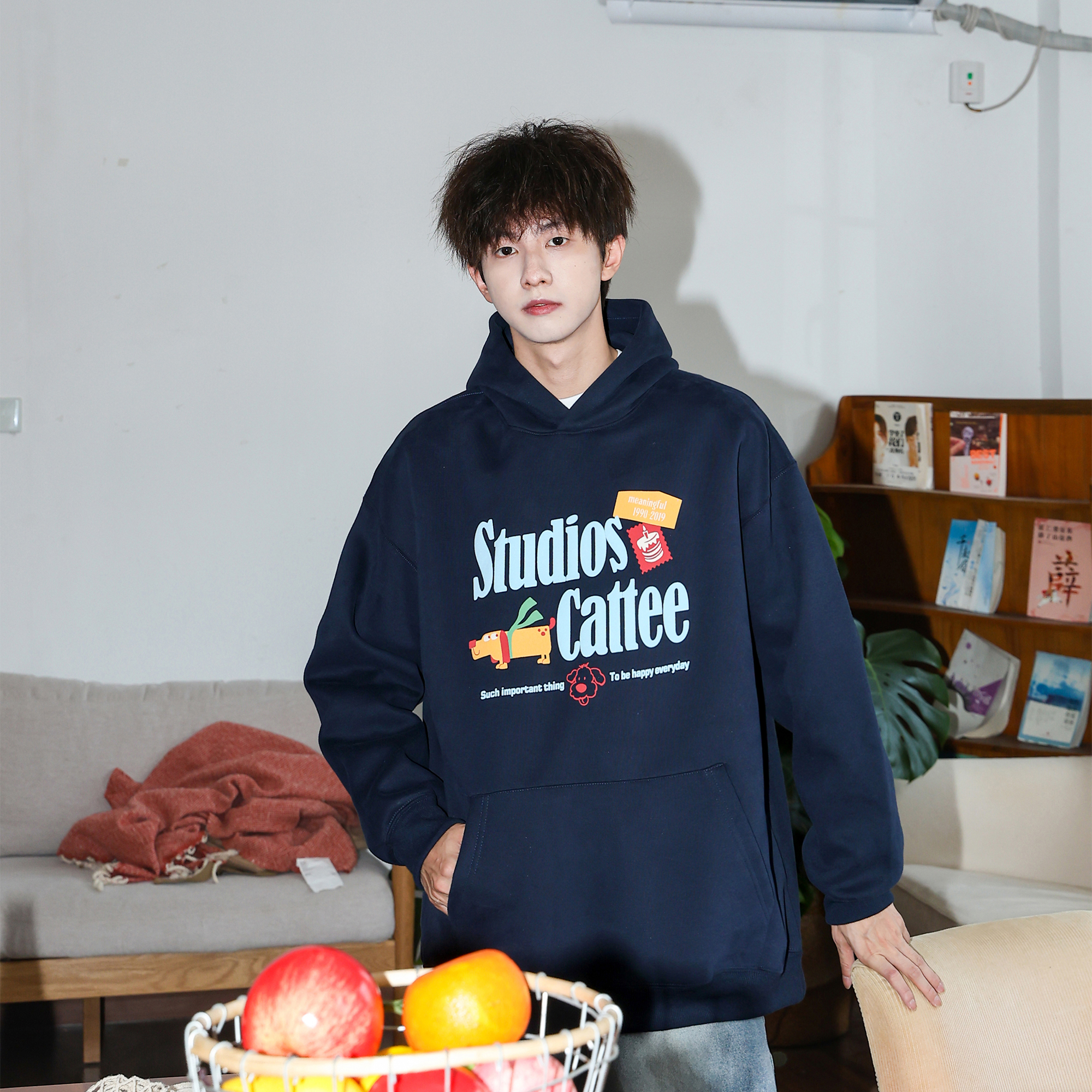 @港仔文艺男 430g重磅印花卫衣男春秋美式oversize男生连帽衫外套
