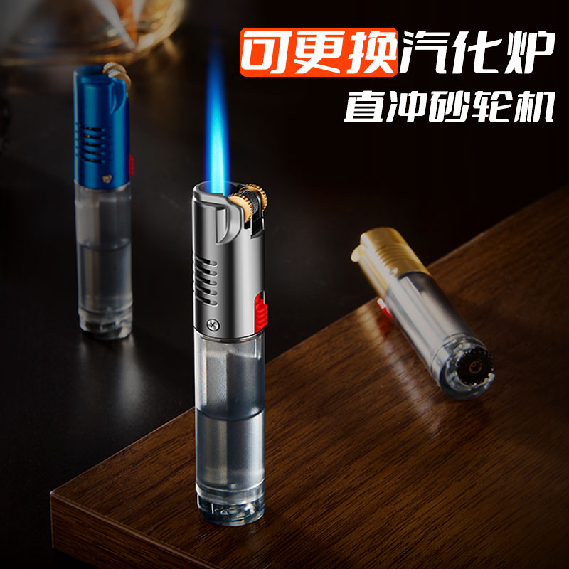 防风充气打火机透明个性创意砂轮金属直冲点火器可换汽化炉送男友