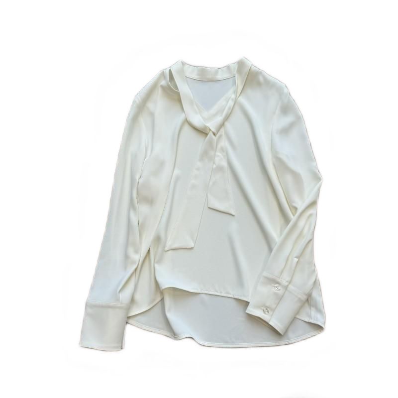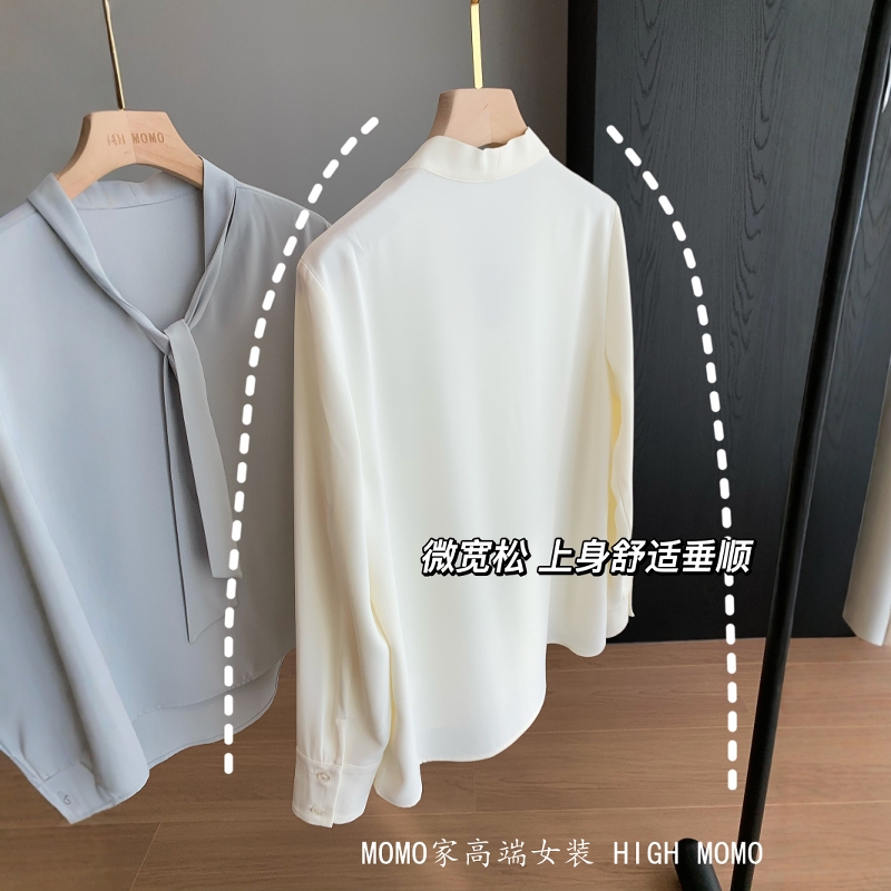 知性OL风~法式蝴蝶结飘带V领衬衫设计感上衣真丝质感系带女士衬衣