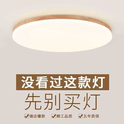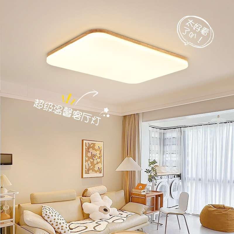 吸顶灯led长方形客厅灯大气简约现代原木卧室房间灯北欧实木灯具
