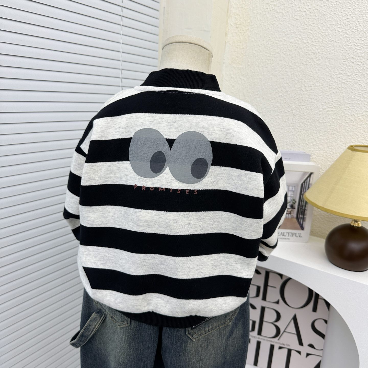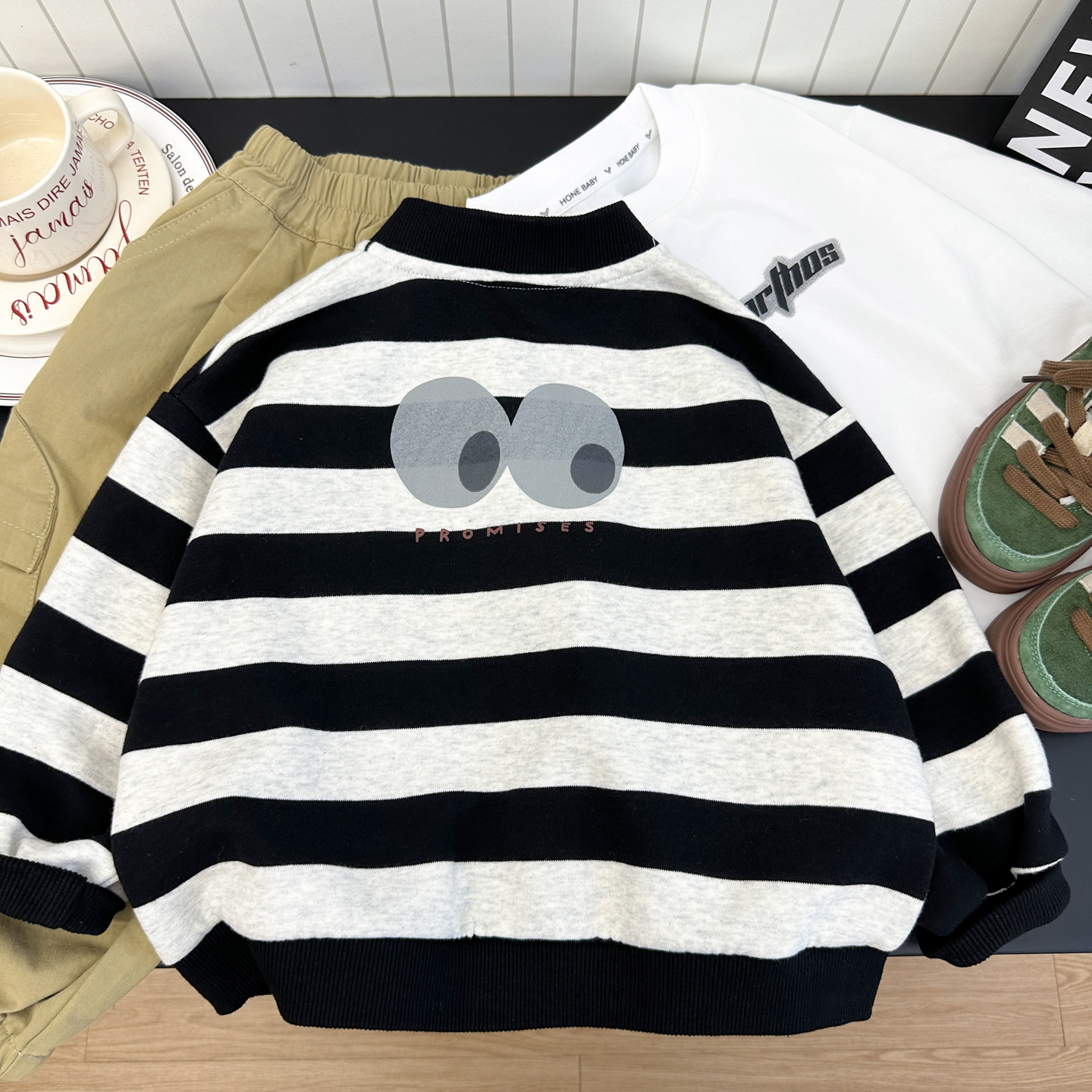 儿童春秋薄款外套2025新款男童韩版宽松条纹夹克宝宝洋气柔软上衣