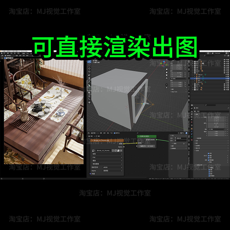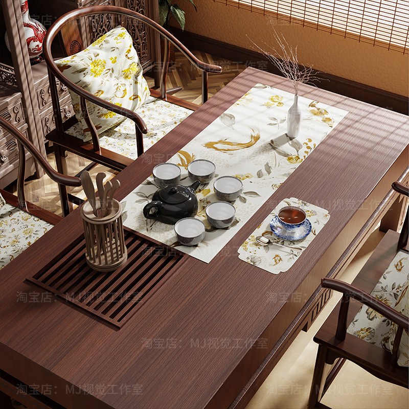 blender中国风茶桌新中式复古椅子桌子茶台茶具模型建模材质1055