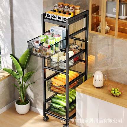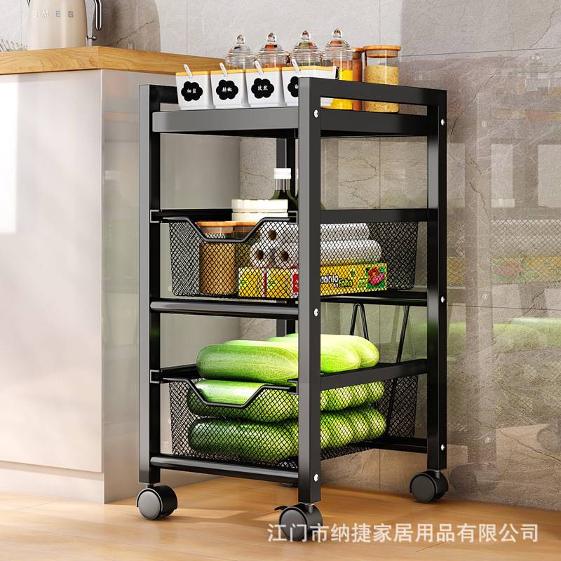 厨房夹缝置物架落地多层多功能小推车收纳架家用储物架可抽拉网层