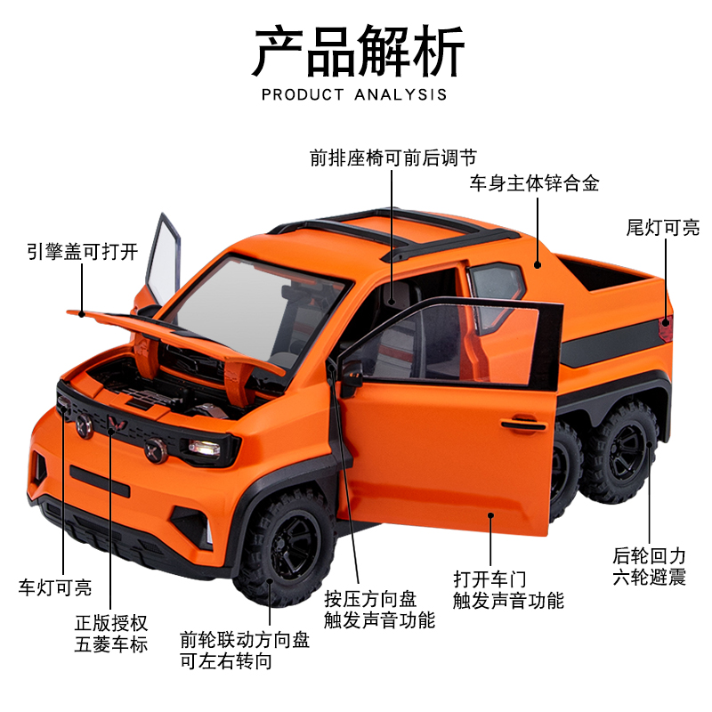 正版五菱宏光mini ev皮卡车模1:18合金汽车模型仿真货车男生玩具
