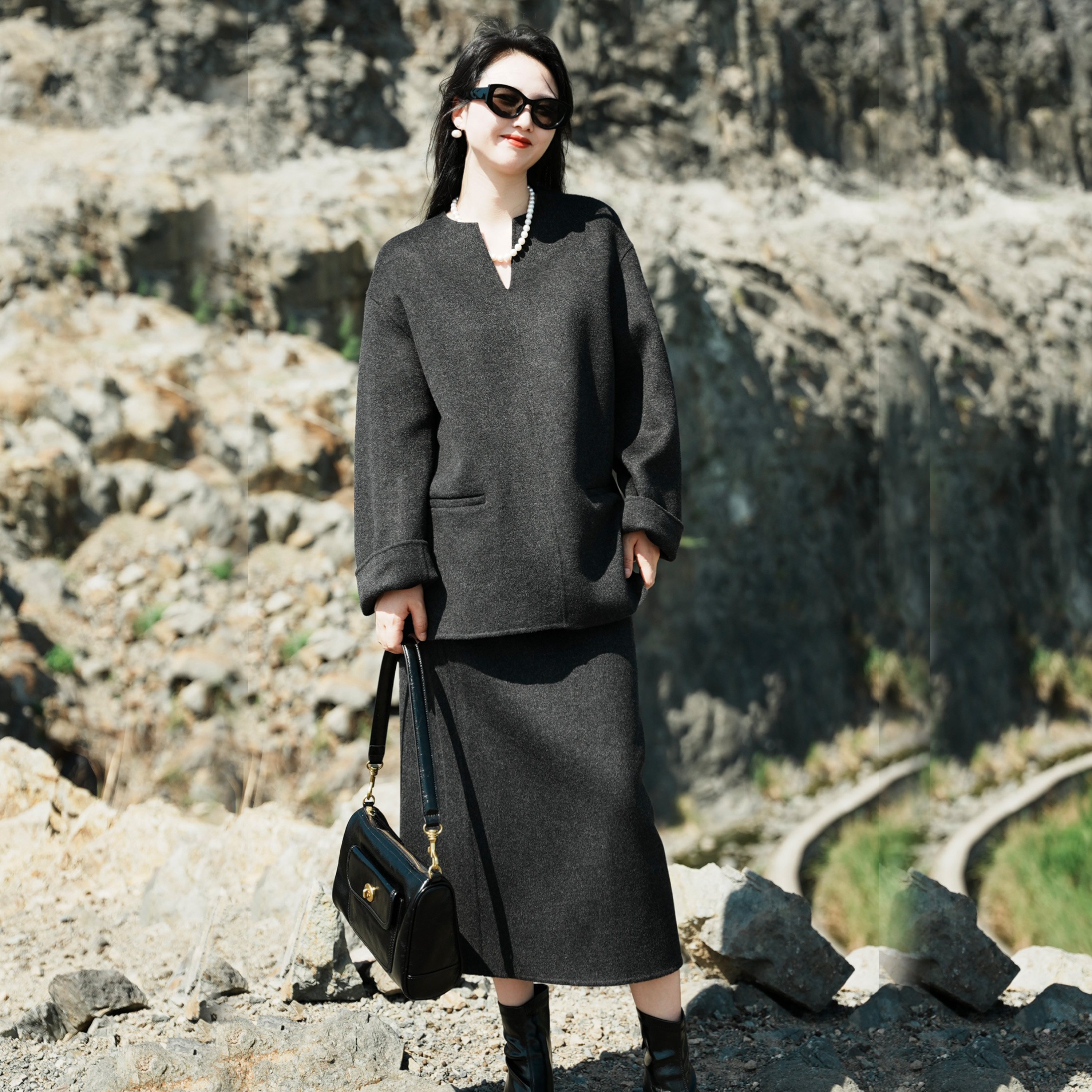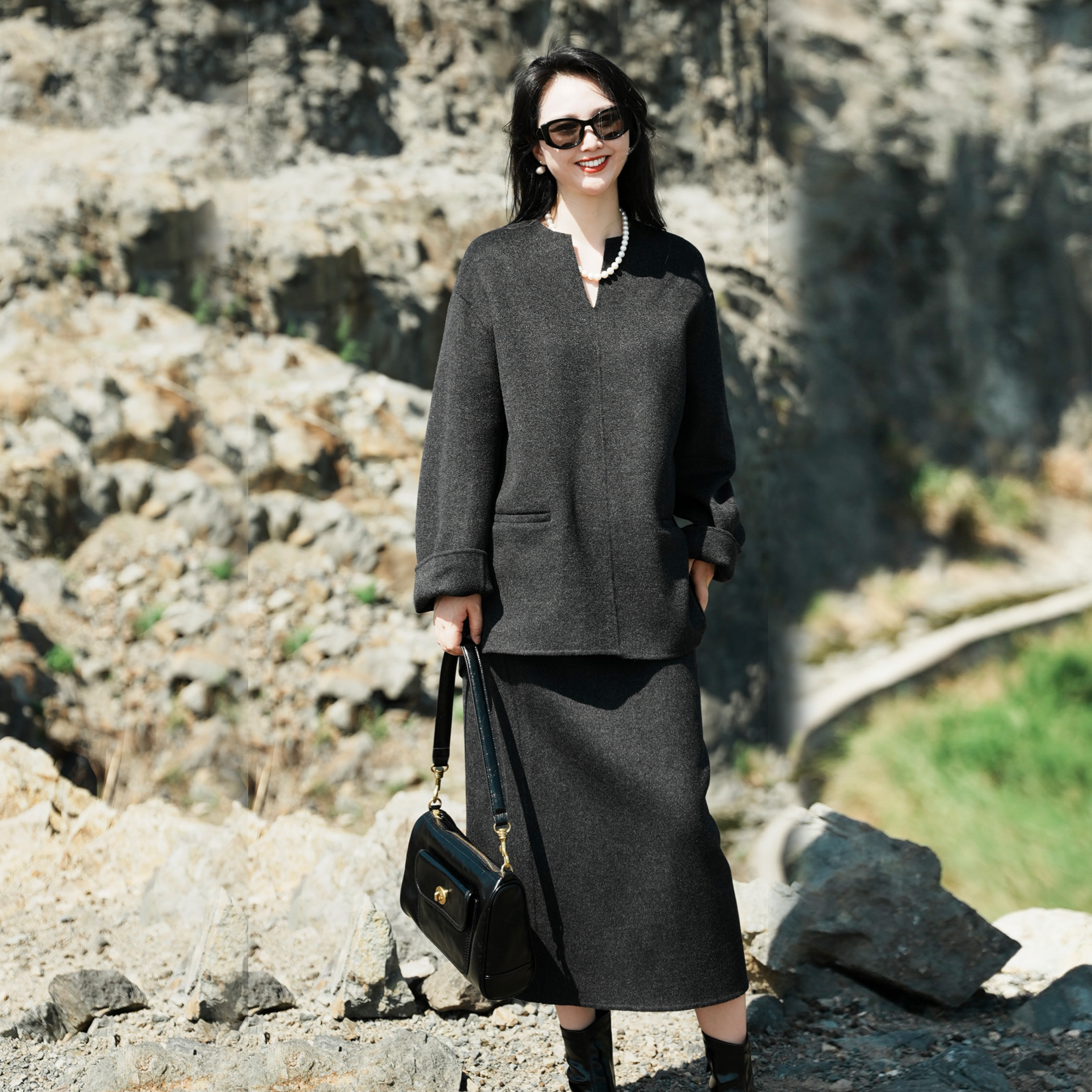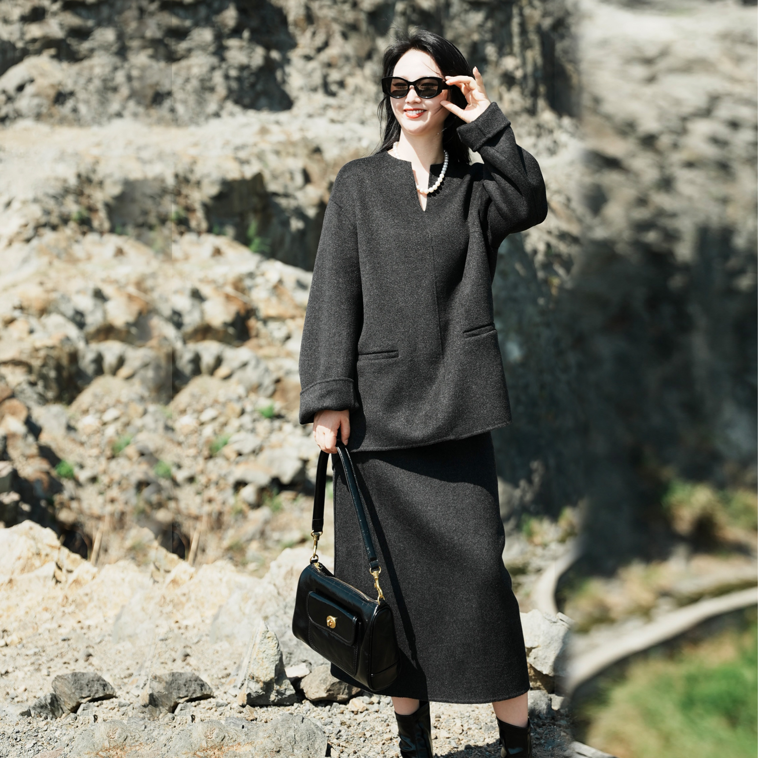 YIHAN 奢品羊绒羊毛双面呢大衣9911