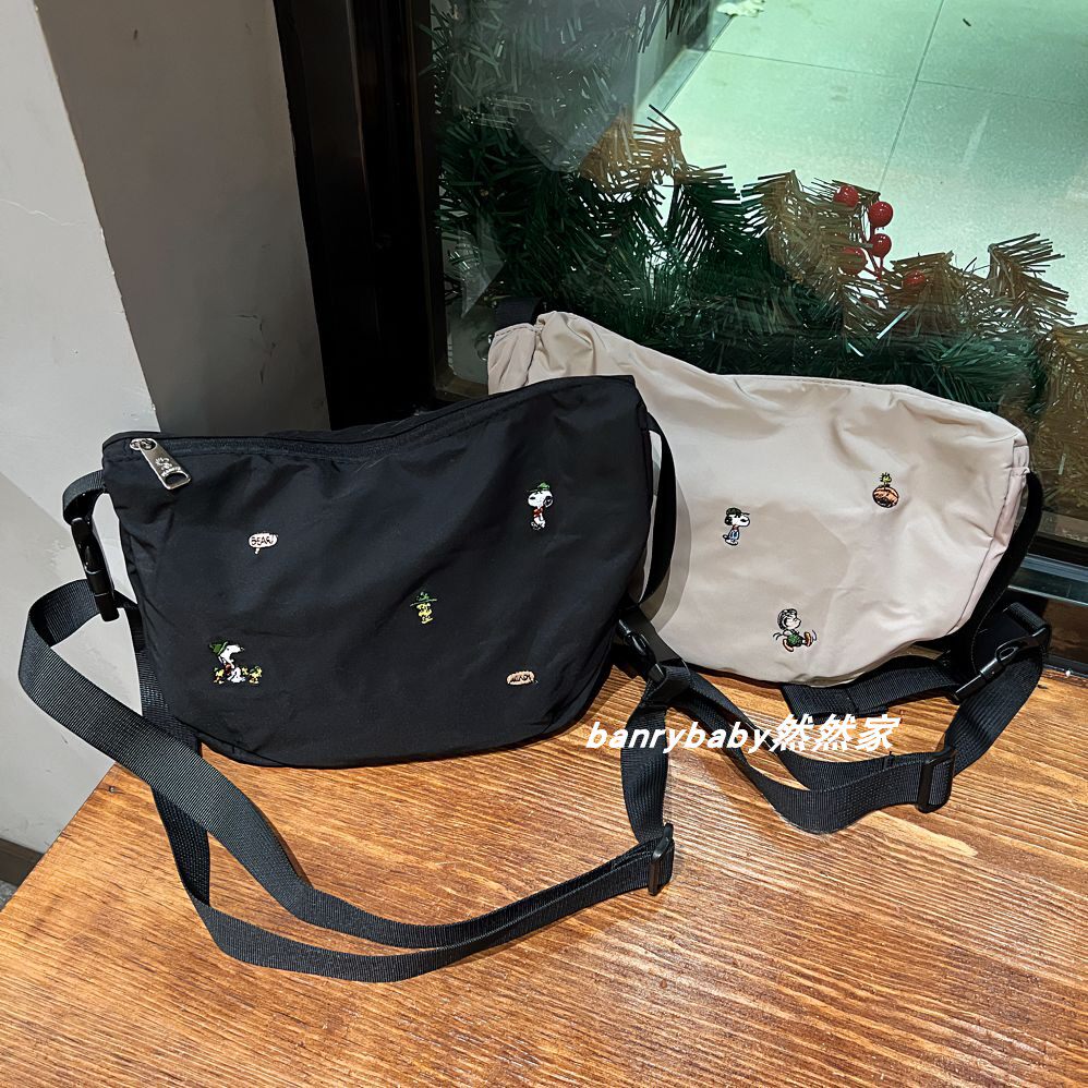 日系可爱史努比斜挎包防水轻便饺子包刺绣可折叠腋下包单肩