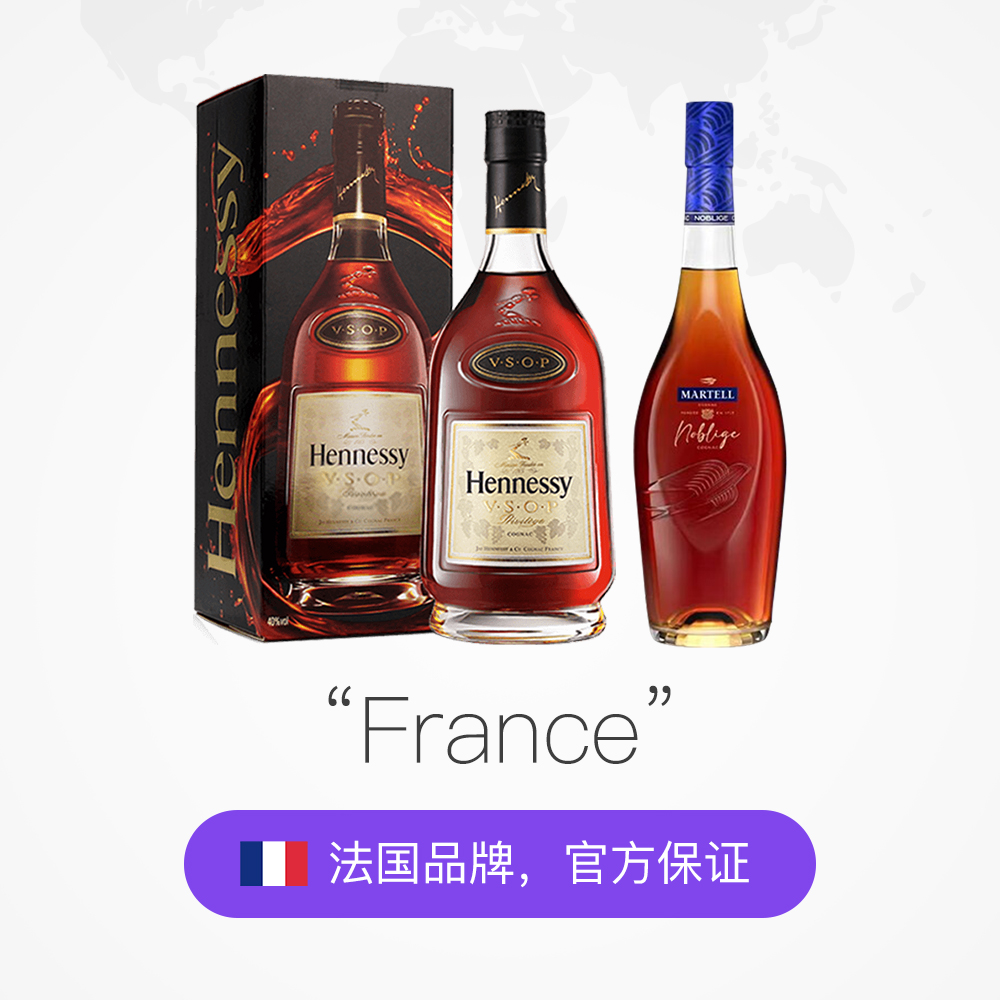 【自营】轩尼诗VSOP350ml+马爹利名士350ml干邑白兰地 正品行货