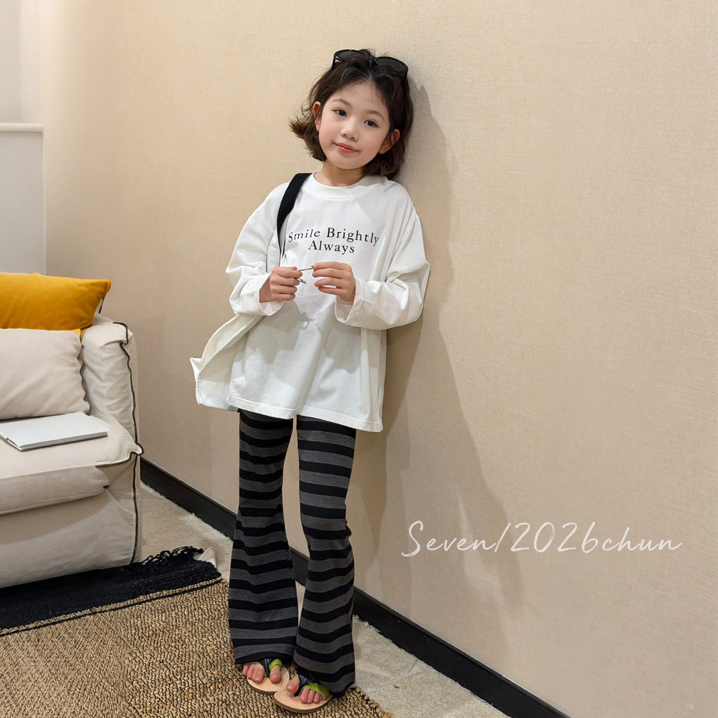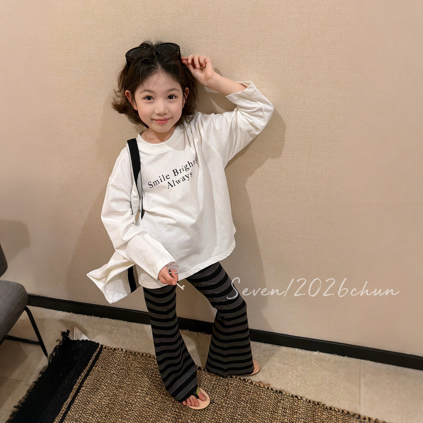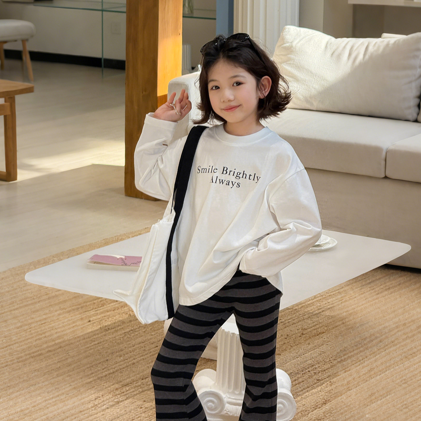 【亲子】柒号童仓女大童韩版圆领长袖T恤春装新款儿童印花上衣潮