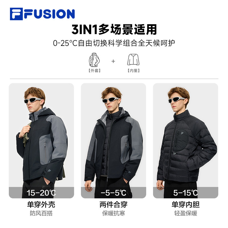 章昊同款FILA FUSION斐乐潮牌羽绒服两件套男2025冬新款宽松外套
