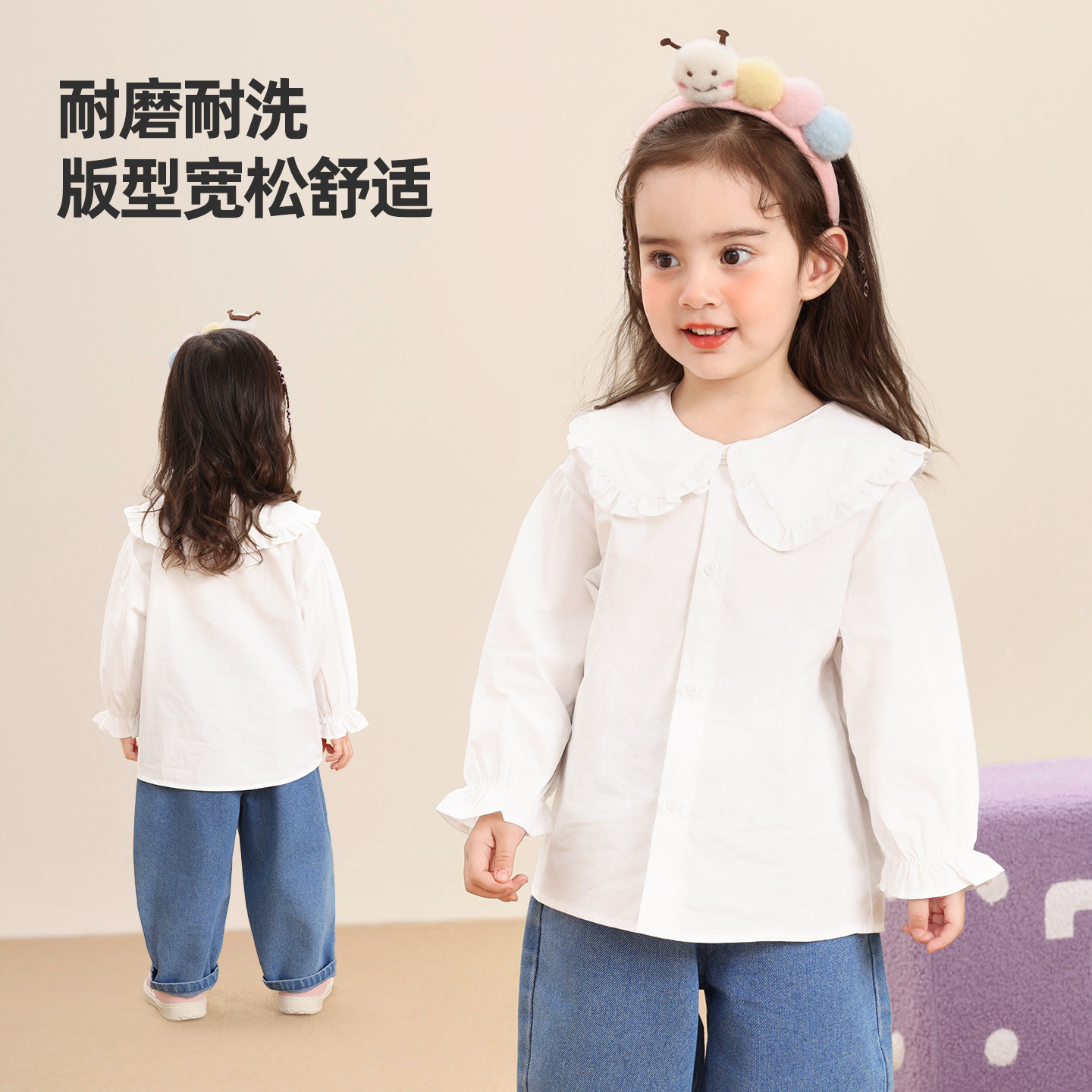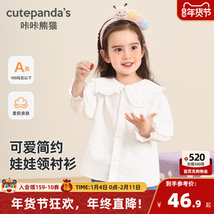 咔咔熊猫女宝休闲衬衫春装女童娃娃领上衣春秋宝宝衣服童装春款潮