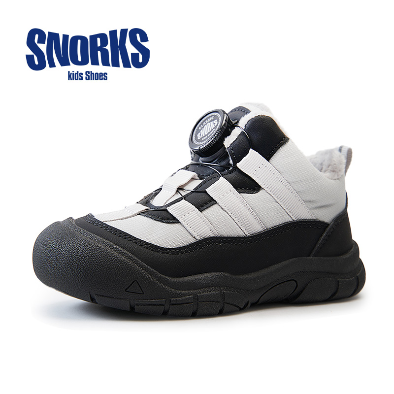 SNORKS儿童二棉鞋男女童鞋子秋冬款旋钮运动鞋小童加绒防水雪地靴