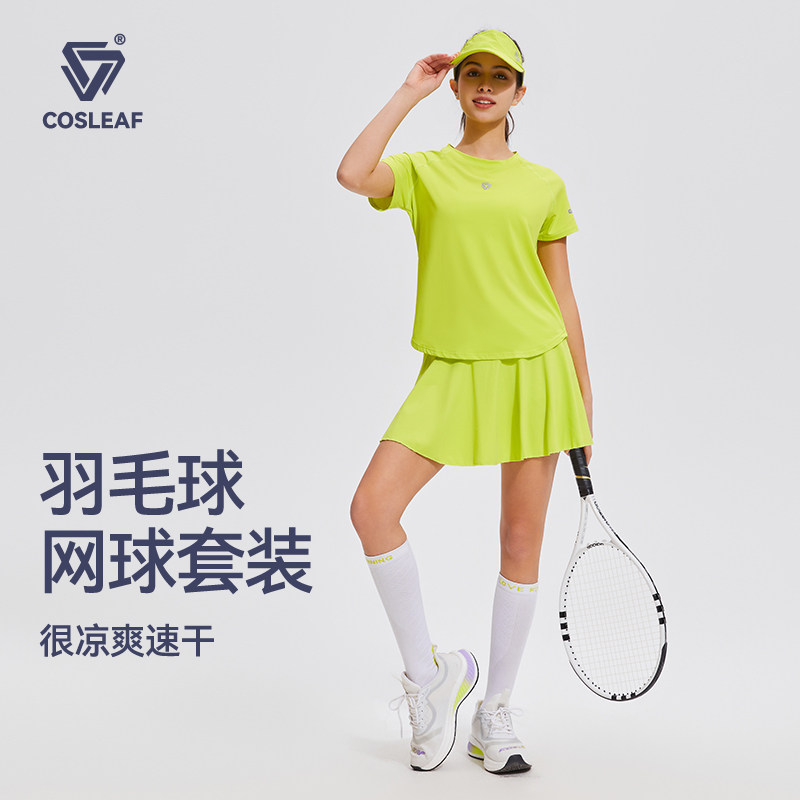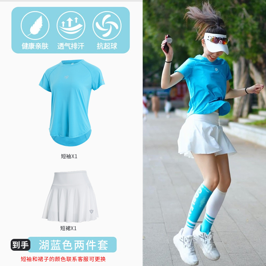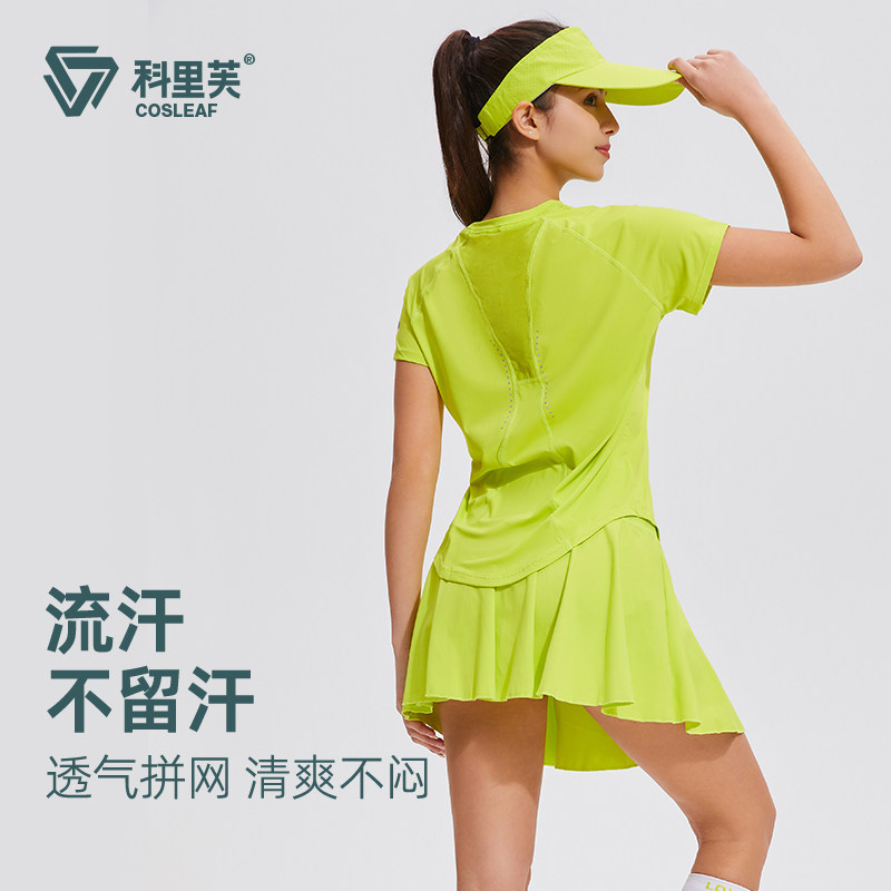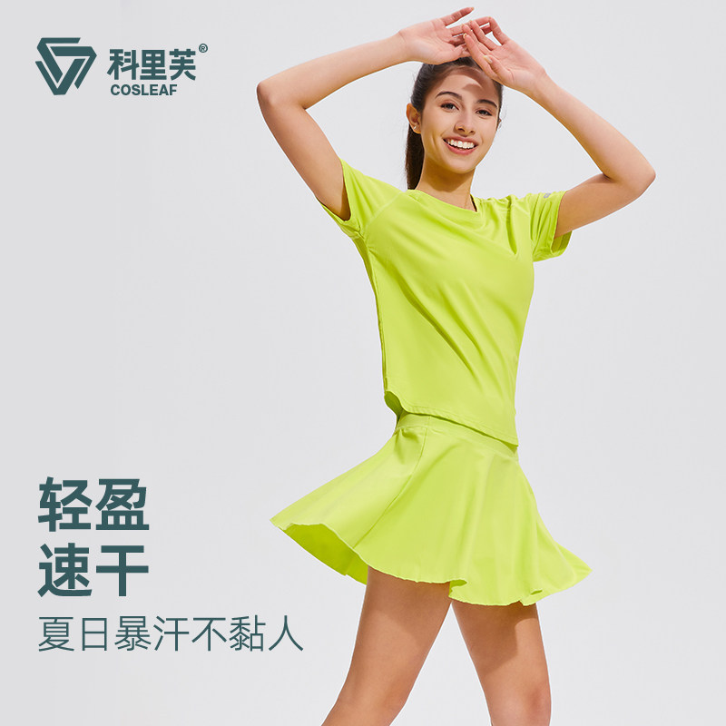 科里芙运动套装女晨跑服夏季短袖羽毛球马拉松跑步健身网球短裙