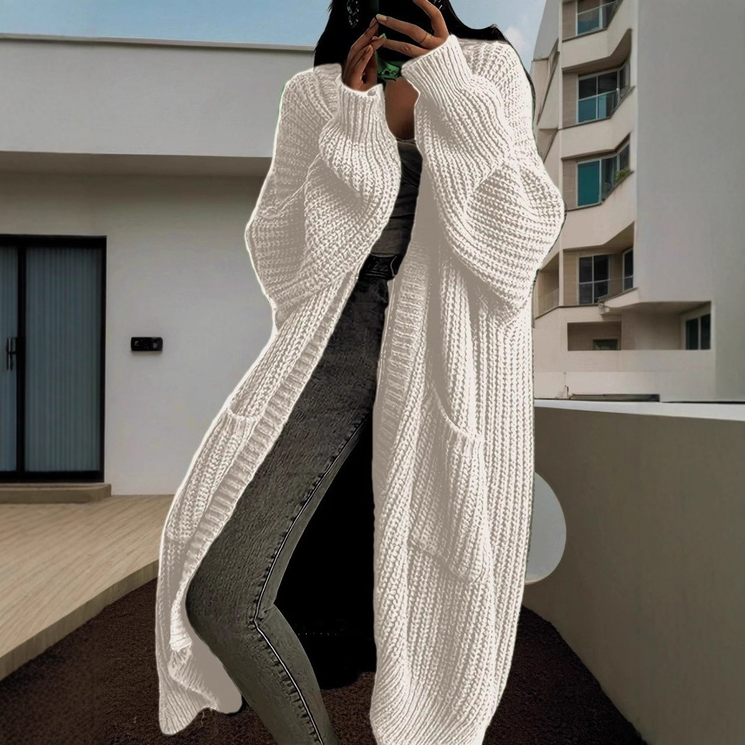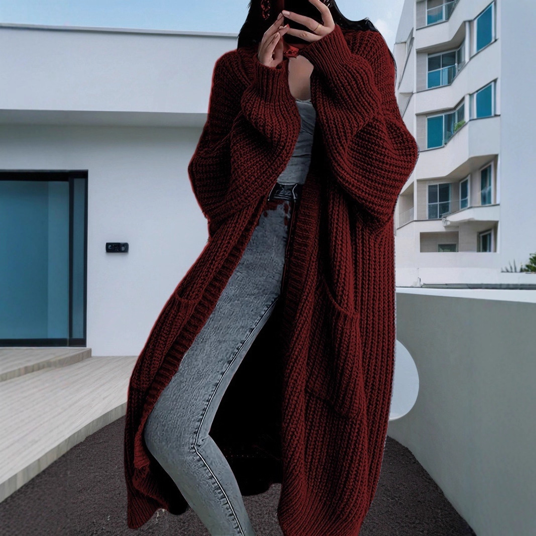 新款中长款慵懒风跨境休闲毛衣女春秋冬宽松百搭长袖针织开衫
