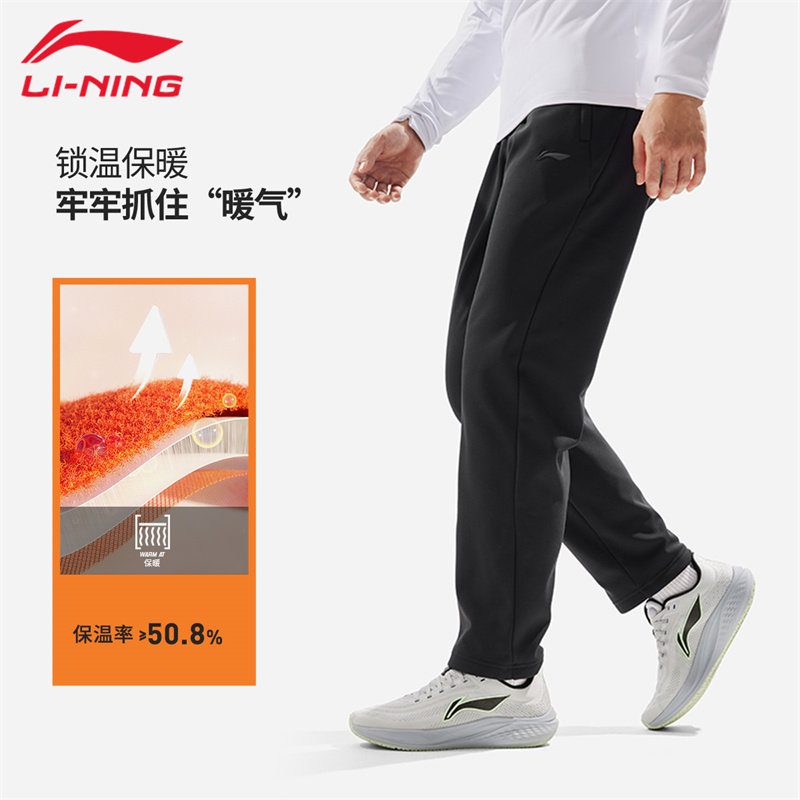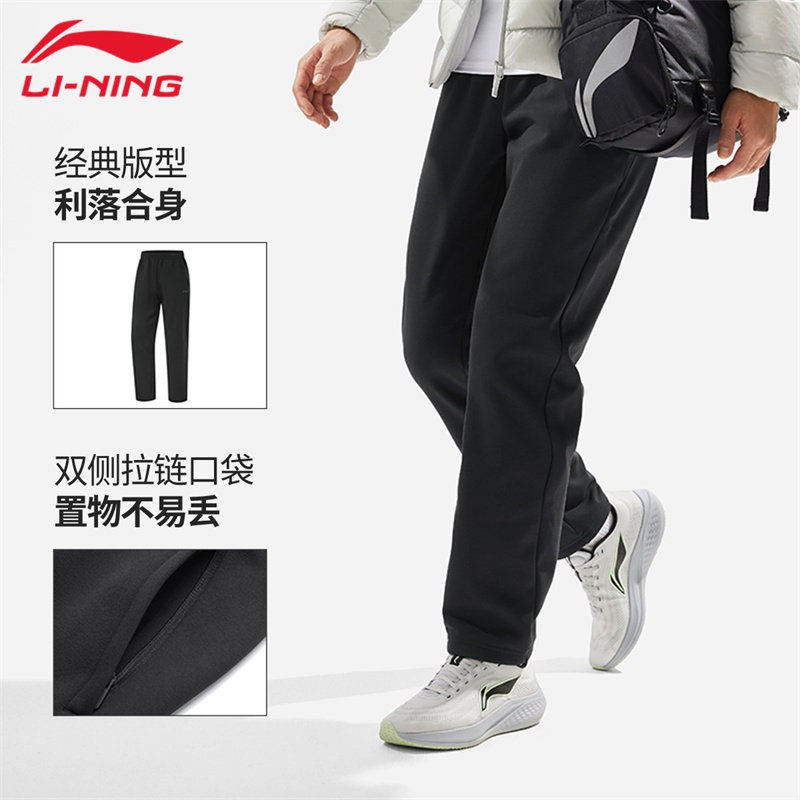 李宁加绒卫裤男春秋运动裤弹力经典直筒耐磨平口休闲长裤AYKSB85