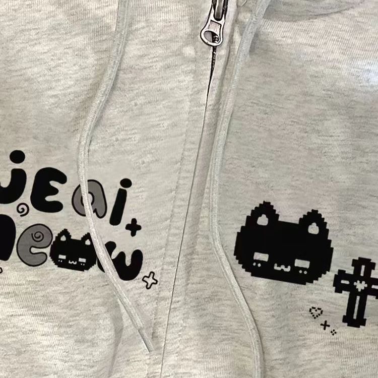 美式复古字母印花连帽卫衣女秋冬加绒宽松慵懒风oversize外套上衣