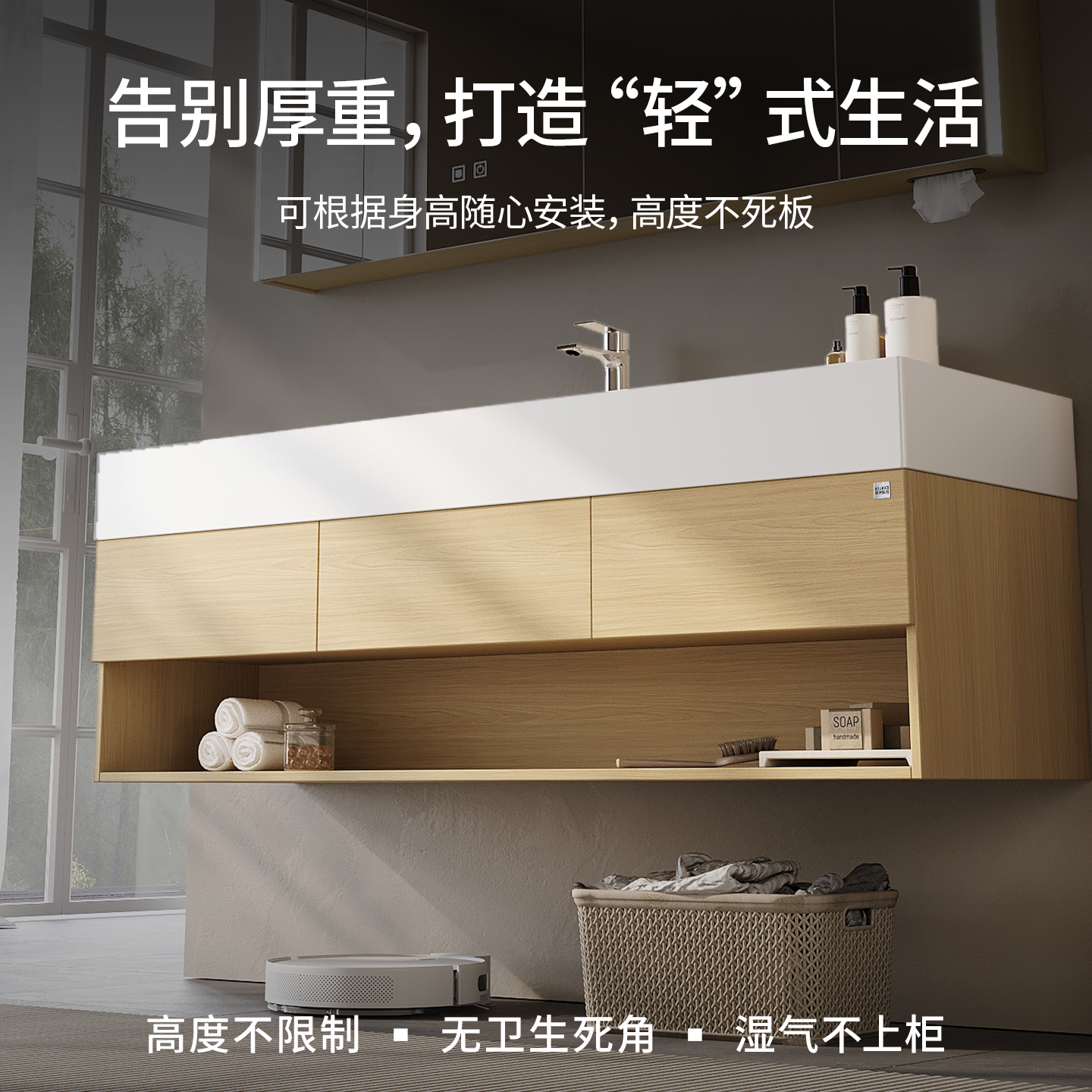 顾家家居浴室柜陶瓷一体盆现代简约洗手脸盘卫生间卫浴柜洗漱台