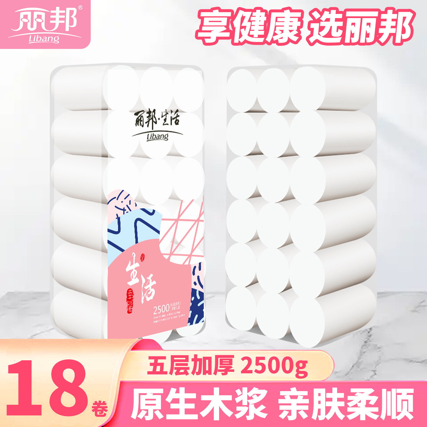 丽邦生活系列卫生纸2500g家用实惠装无芯卷筒纸18卷中长卷纸厕纸