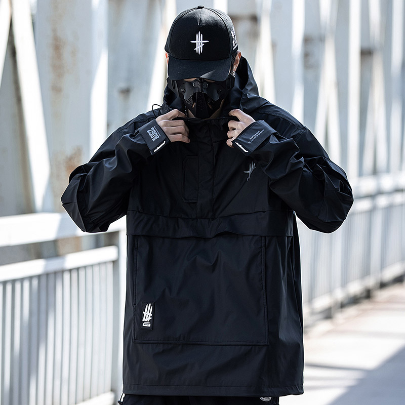 AOGZ国潮牌半拉链冲锋上衣男春秋皮衣情侣套头夹克机能风工装外套