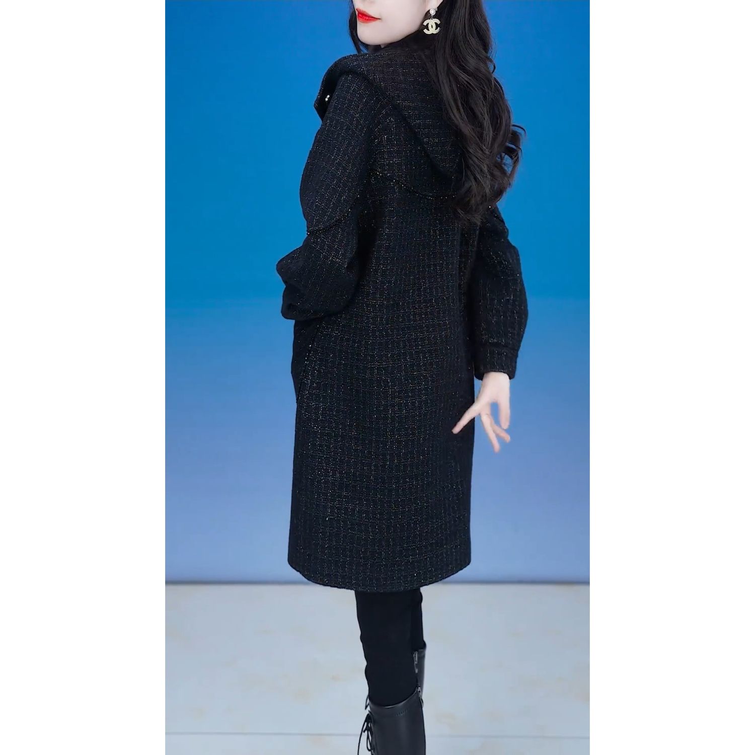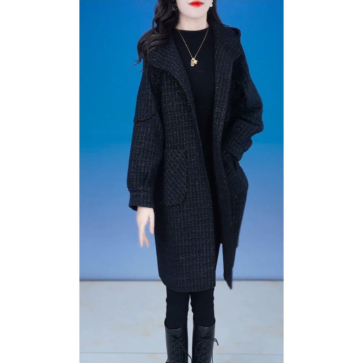 气质宽松显瘦中长款休闲百搭连帽外搭女2025秋冬新款时尚毛呢外套