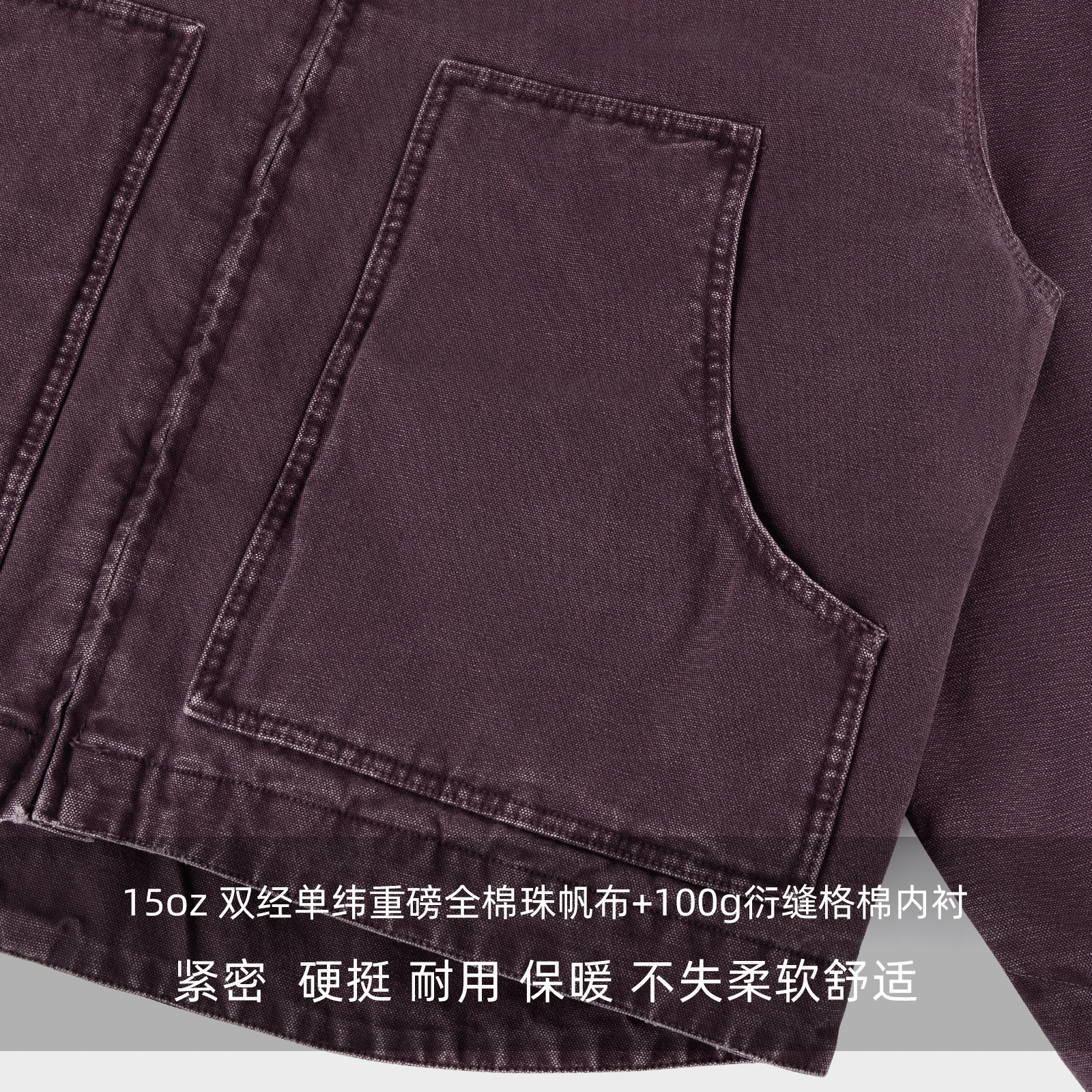 IDLT 15oz 短宽工装夹克重磅珠帆布成衣染色水洗外套廓形棉衣宽松