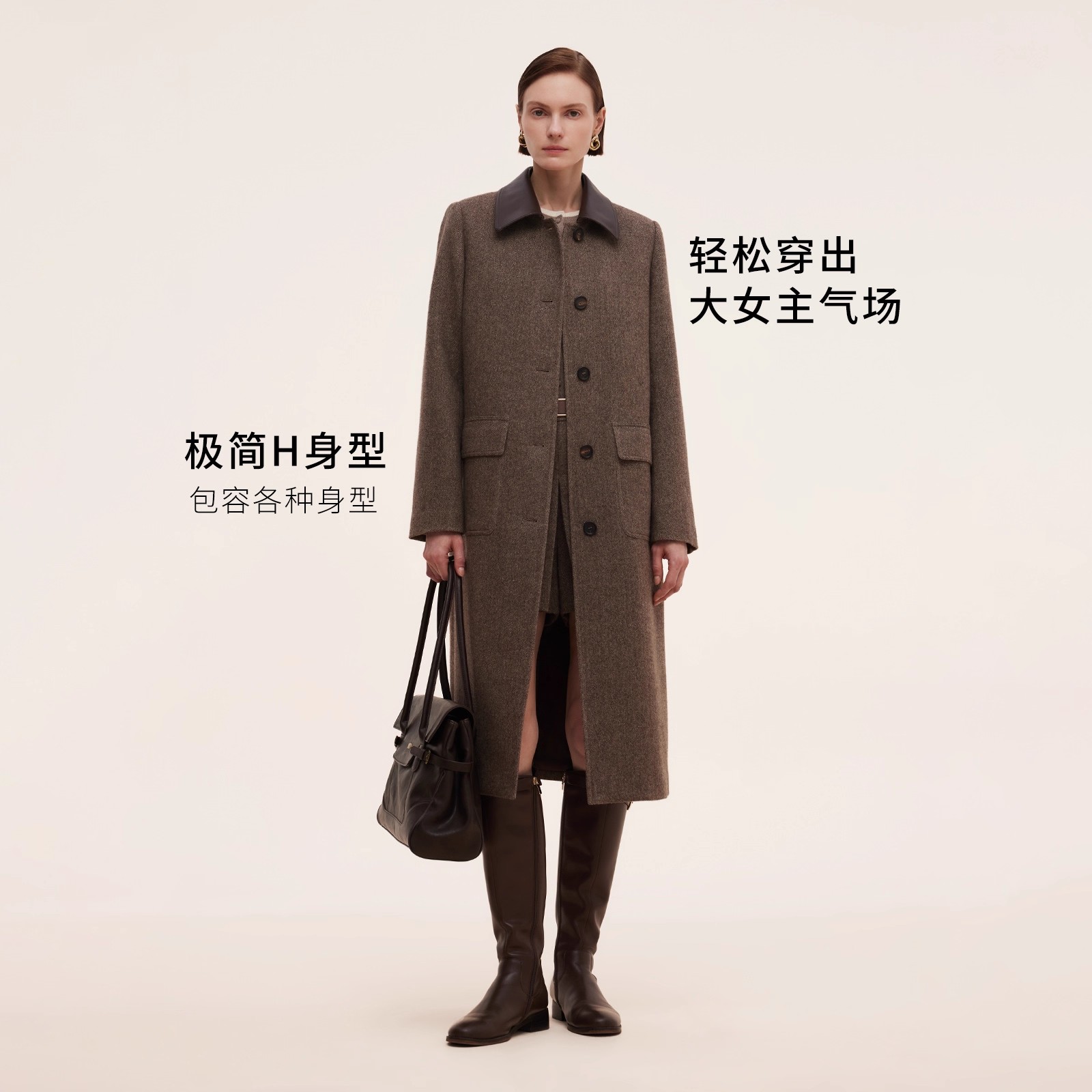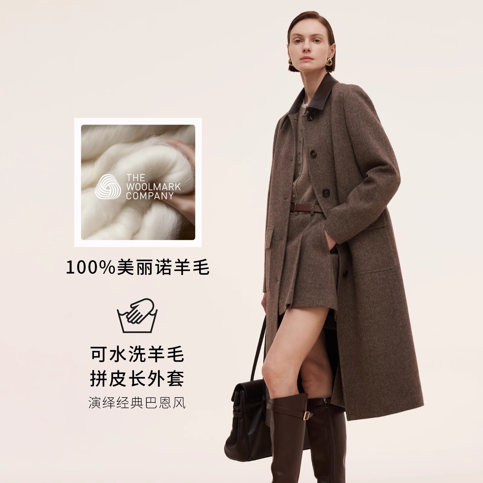 首降5折|歌莉娅水洗羊毛大衣女秋冬2025新款巴恩风穿搭长款外套