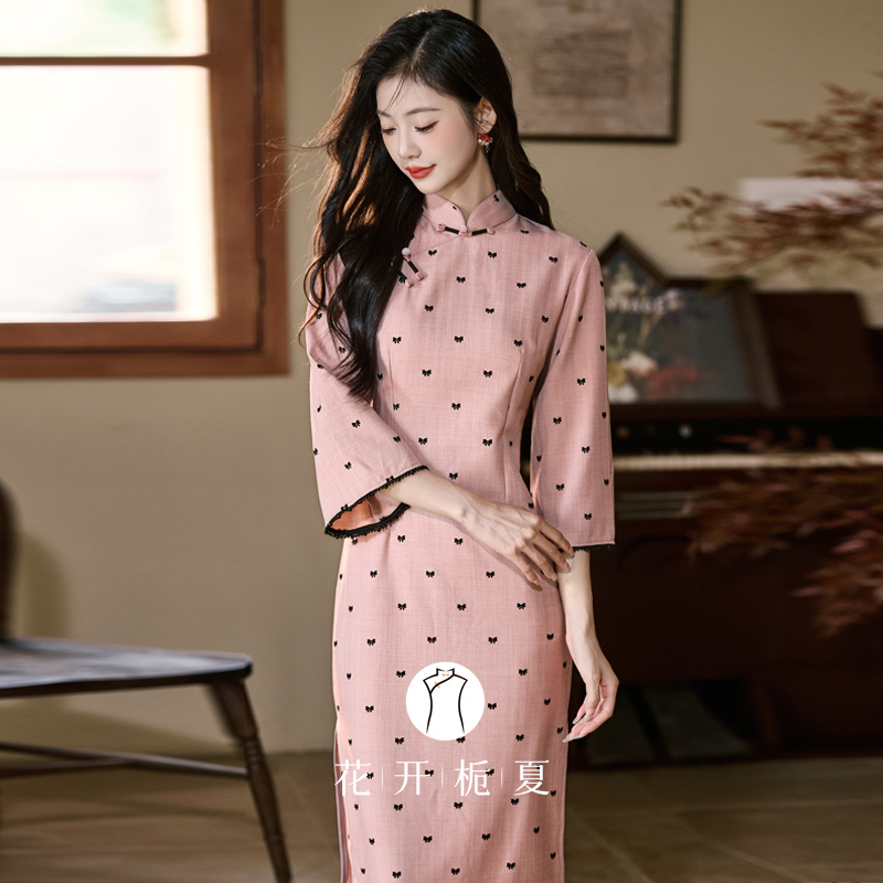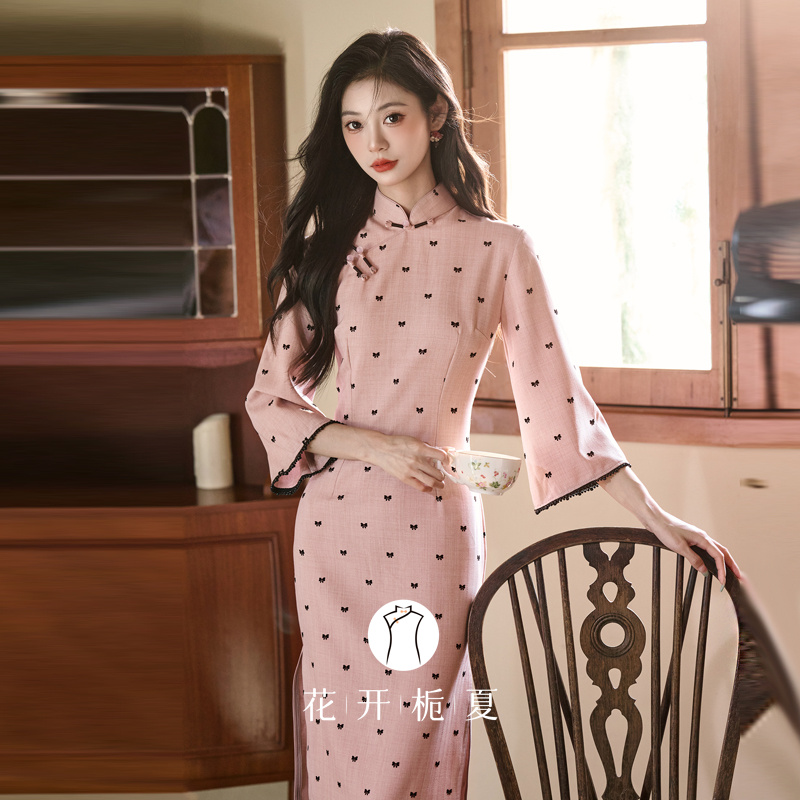 绝美粉色旗袍2025秋季新款新中式改良年轻款少女连衣裙9/4