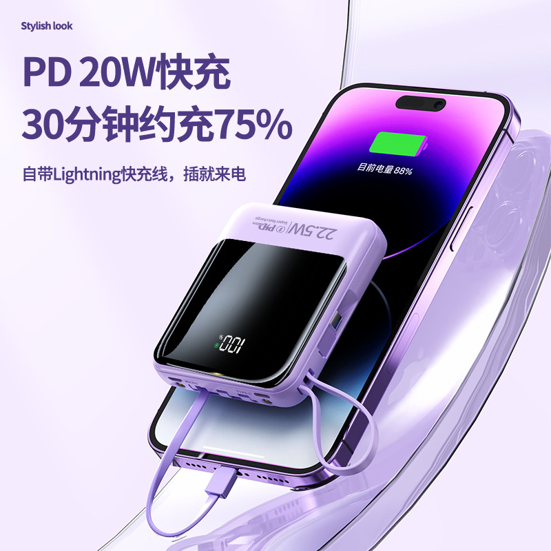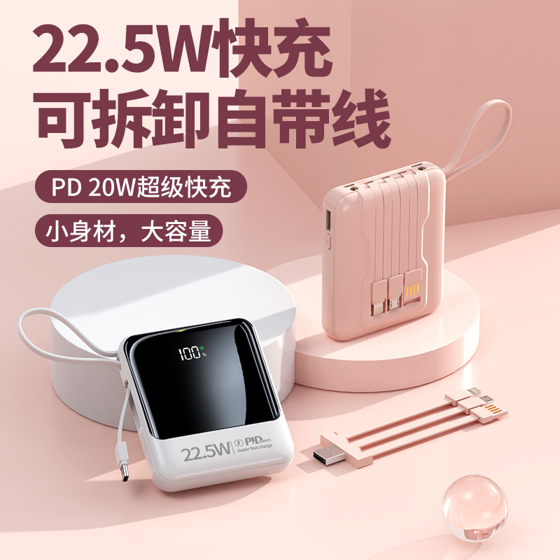 新款充电宝超大容量20000毫安超薄小巧便携迷你自带线超级快充