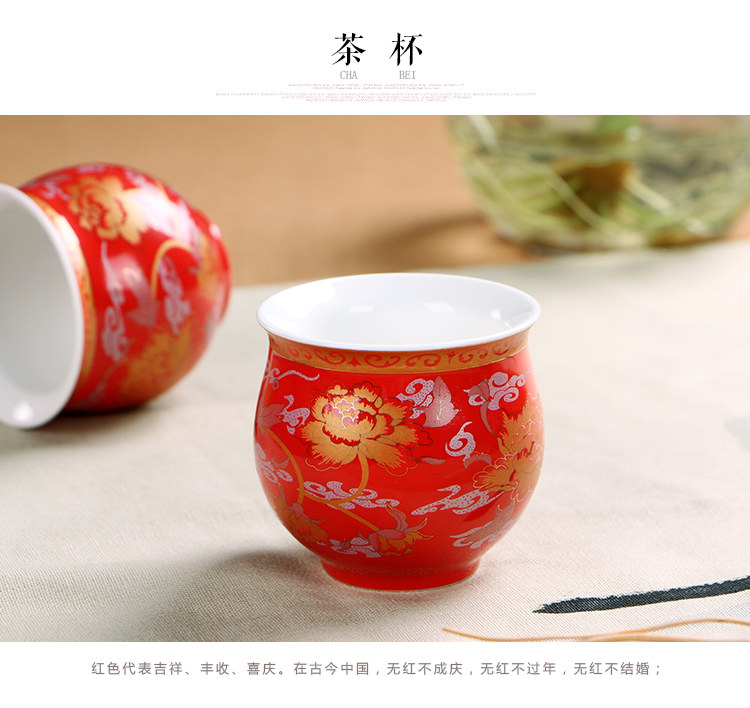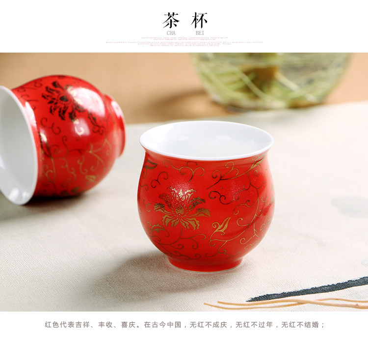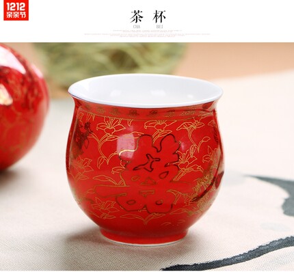 新品双喜字双层隔热茶杯中国红釉瓷器茶具套装结婚庆龙凤呈祥礼品