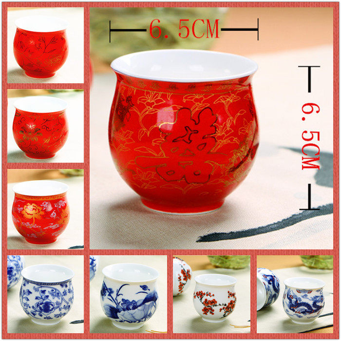 双喜字茶杯中国红结婚庆龙凤呈祥