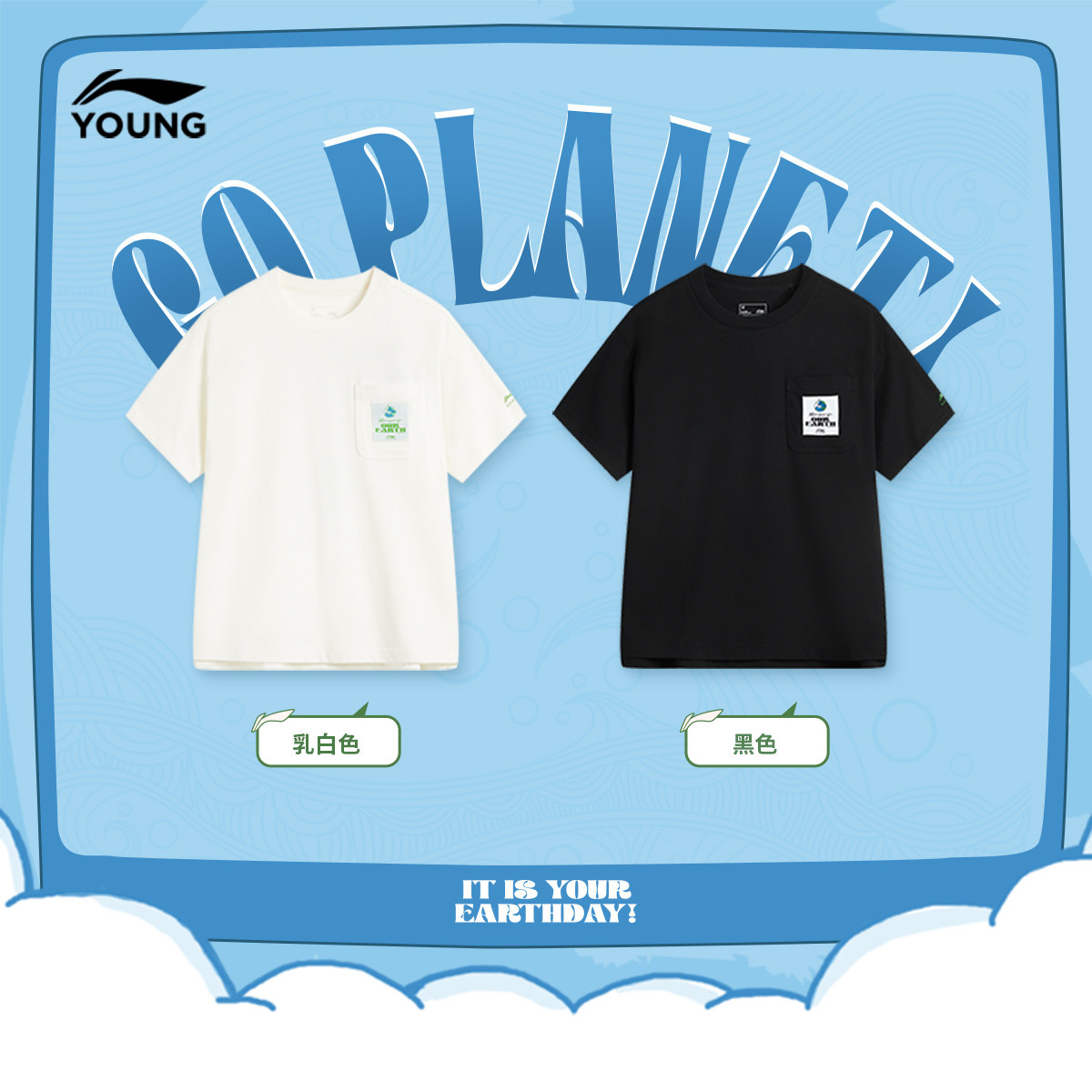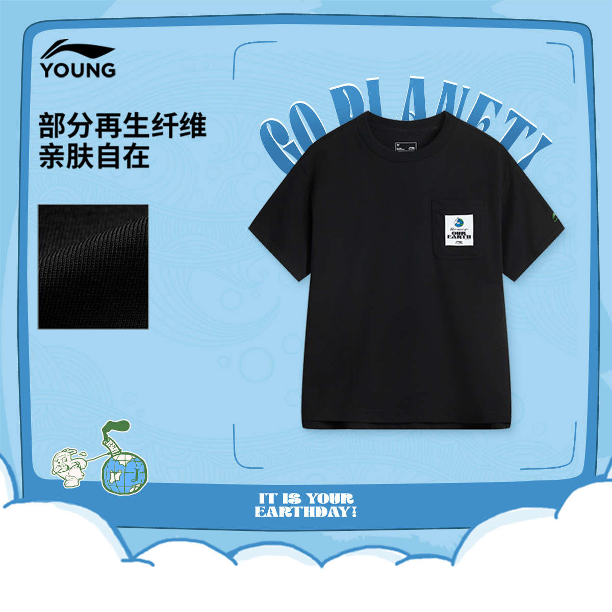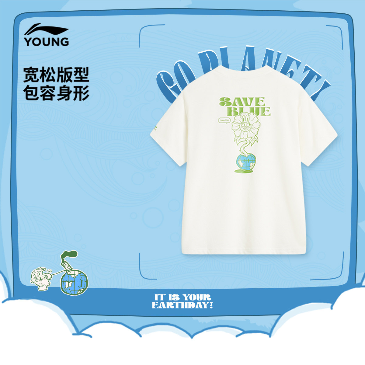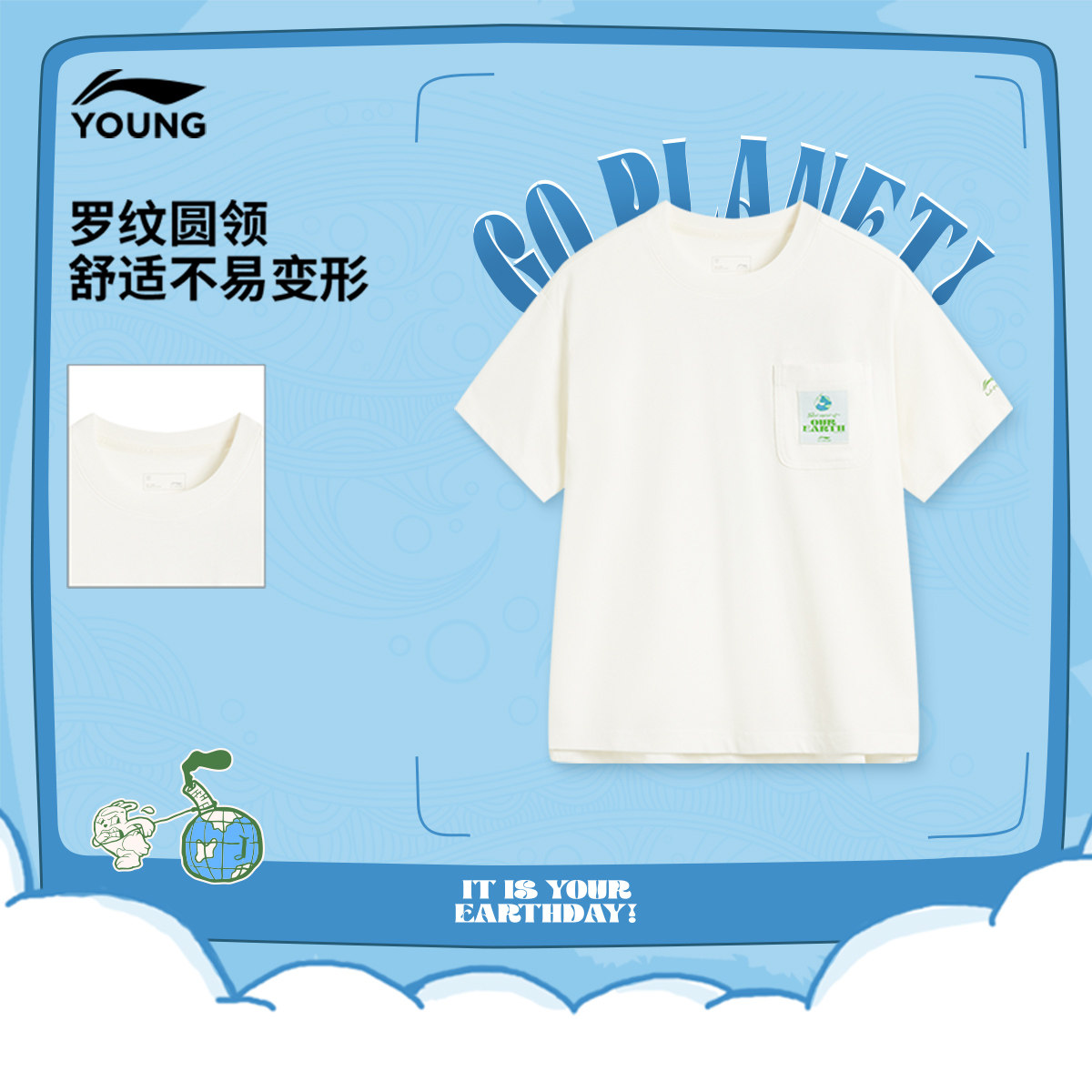 李宁童宽松圆领男印花短袖文化衫