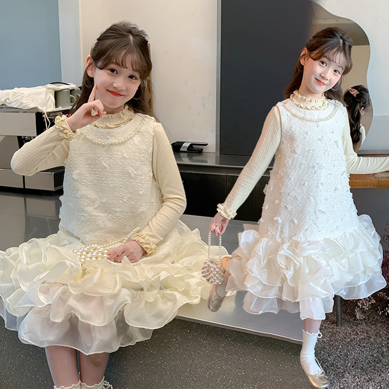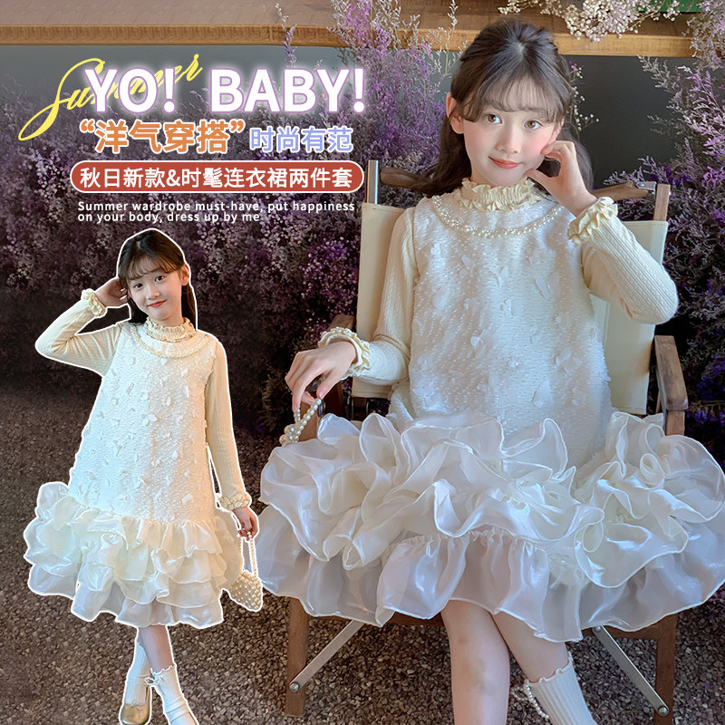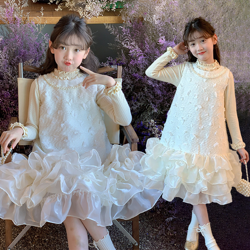 女童连衣裙秋冬新款大童加厚长袖裙子儿童超好看富家千金感公主裙