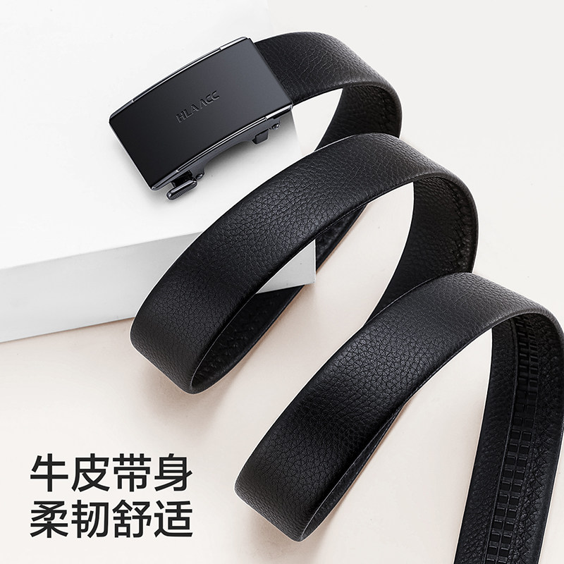 HLA/海澜之家男士皮带真皮自动扣头层牛皮腰带裤带商务百搭礼物