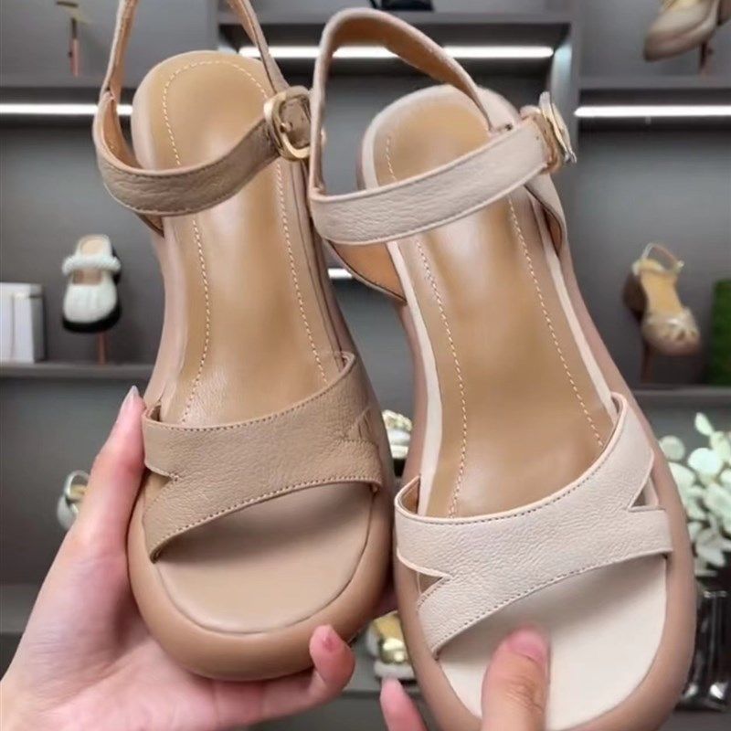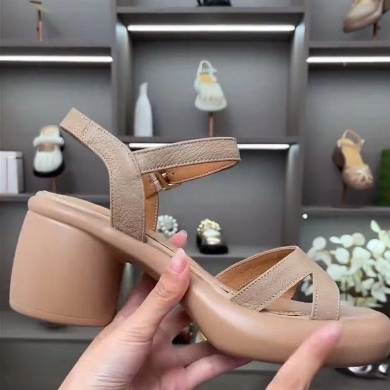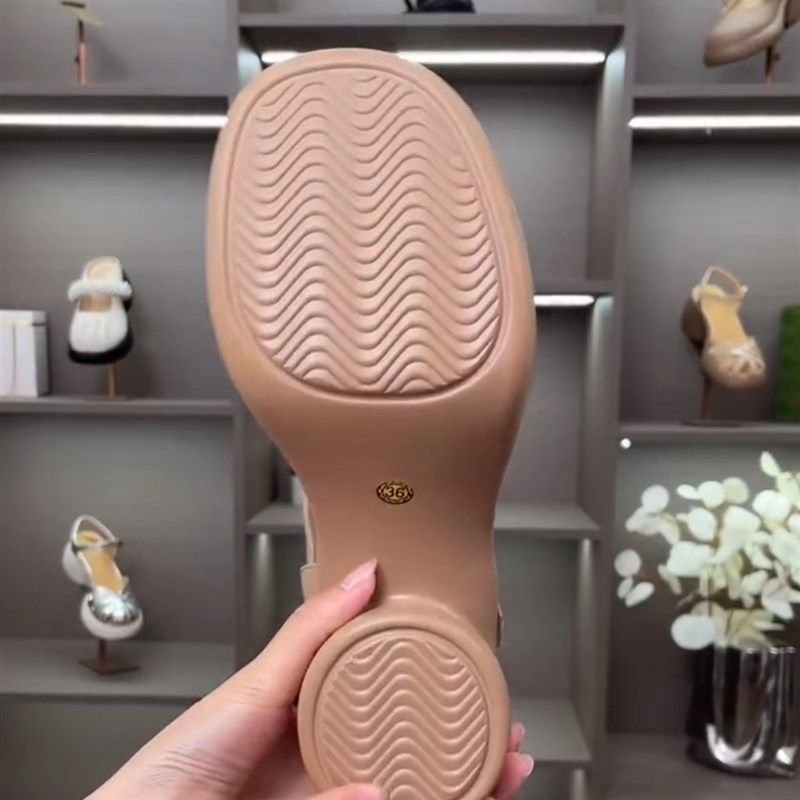 防水台厚底露趾一字带高跟鞋女2024夏季时尚百搭粗跟气质简约凉鞋