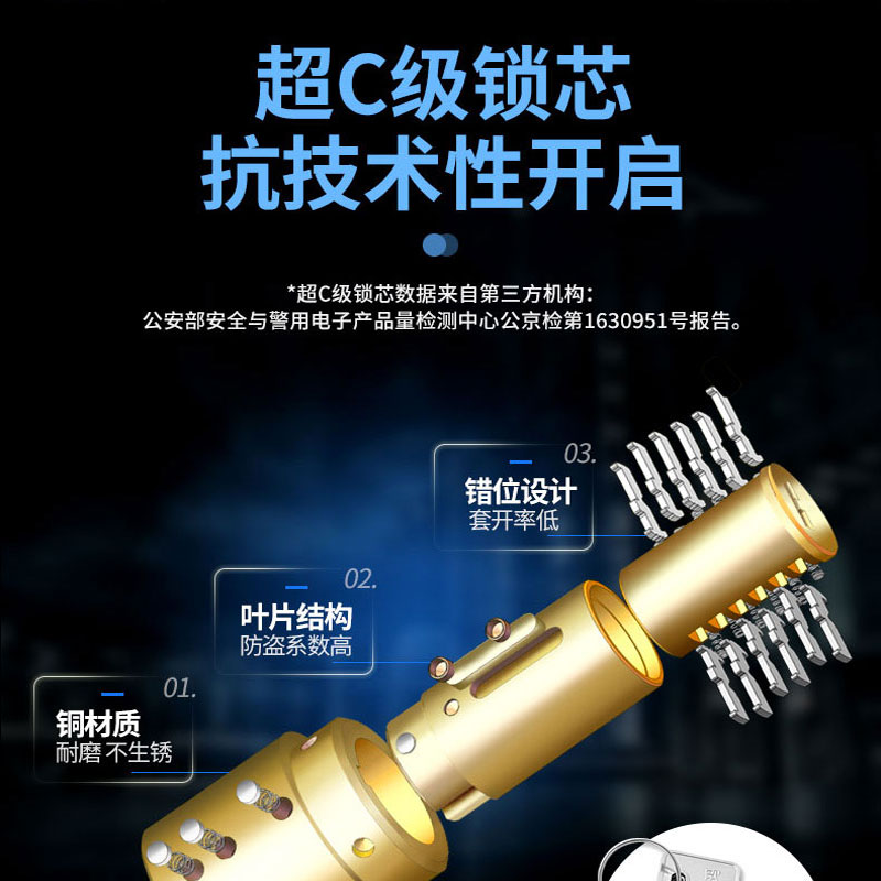 极速玥玛玻c璃门锁双门双开关U型锁超C级锁芯抗液压剪防盗加长U形