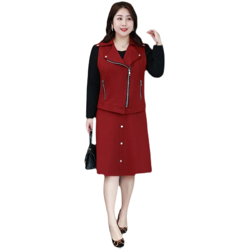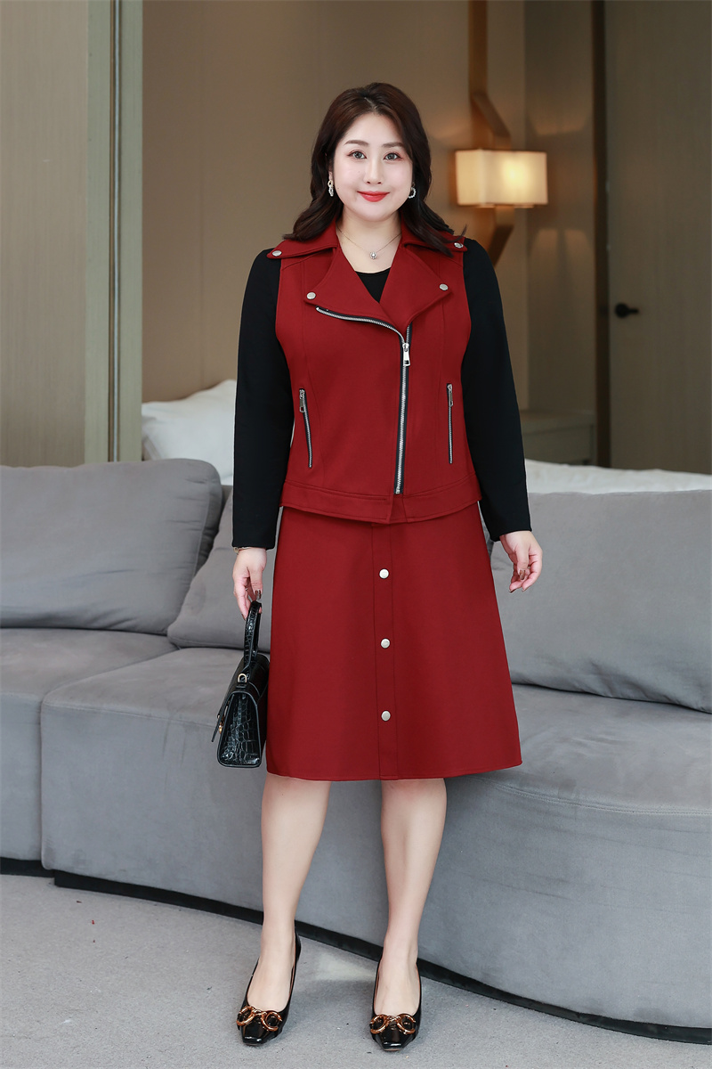 2025秋季新款胖妹妹大码女装遮肚显瘦西装马甲连衣裙时髦两件套装
