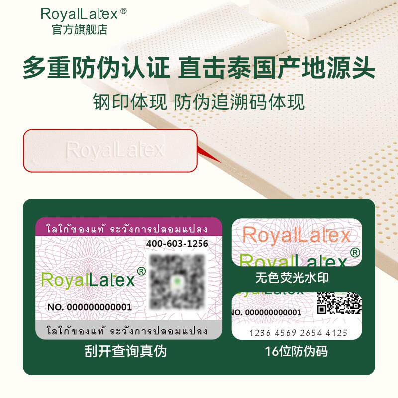 Royallatex及图官方 泰国进口天然乳胶床垫1.8m进口家用薄垫子