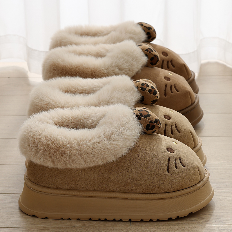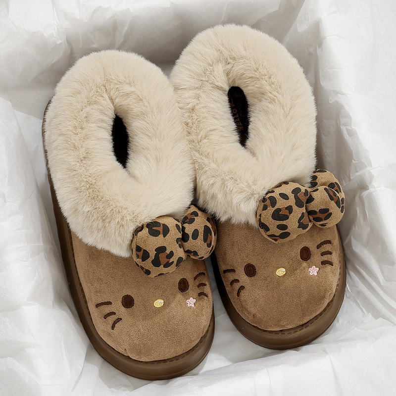 QYCKABYHelloKitty高帮棉拖鞋女冬季加绒保暖厚底包跟棉鞋女外穿