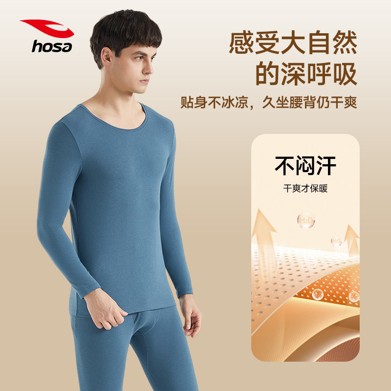 浩沙hosa男士保暖内衣套装加绒加厚秋衣秋裤圆领长袖打底棉毛衫